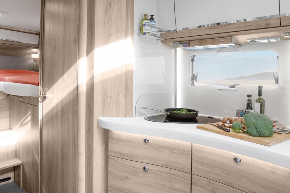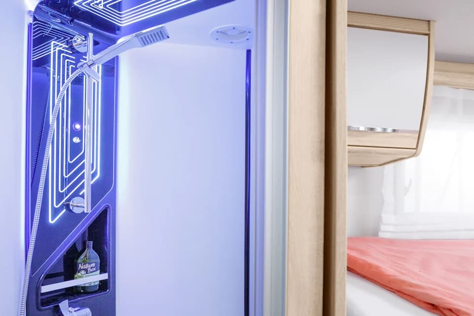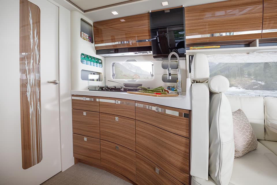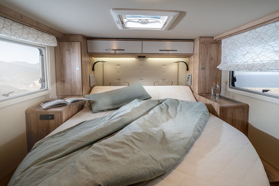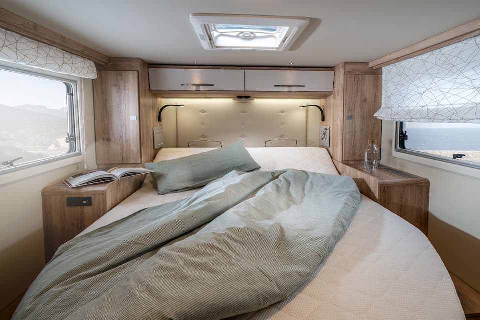 Integra – the luxury liner – is available with an overall length of 7.89 metres to 8.99 metres in two layouts: with single beds or with a central double bed. The models in the new Integra Line series also offer you premium travelling comfort with more compact layouts without compromising on luxurious features. High-quality materials, new Comfort equipment such as the electric drop-down bed and the electric front pleated blind in the Integra complete the feel-good atmosphere. Always on board in both model ranges: the usual Eura Mobil benefits such as Heated raised floor and the durable body made of GRP composites.