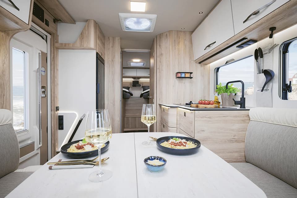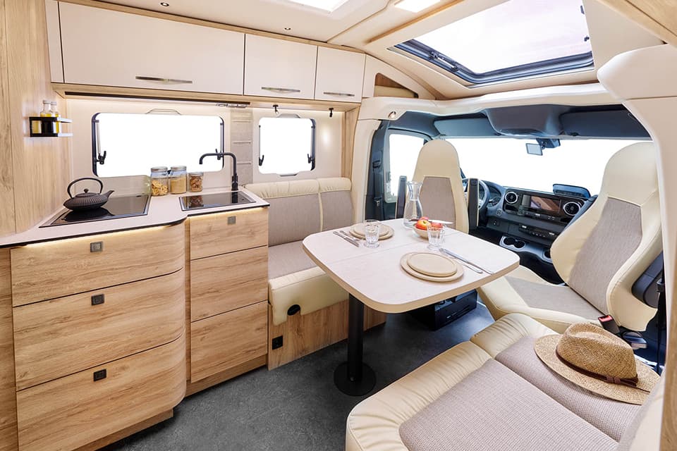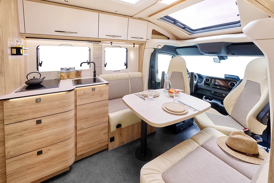 Partly built more compactly, partly with the impressive technology of the larger models: Semi-integrated motorhomes from Eura Mobil offer a Maximum comfort also for manageable dimensions. In the Profila RS, for example, a large, comfortable drop-down bed is hidden directly in the ceiling and offers two people a relaxing night’s sleep. Four layouts of the Profila T series are available on Mercedes-Benz chassis and with AL-KO low frames. Thanks to the fully insulated and heated double floor in these lightweight constructions, high-tech materials are also optimally utilised in this class.