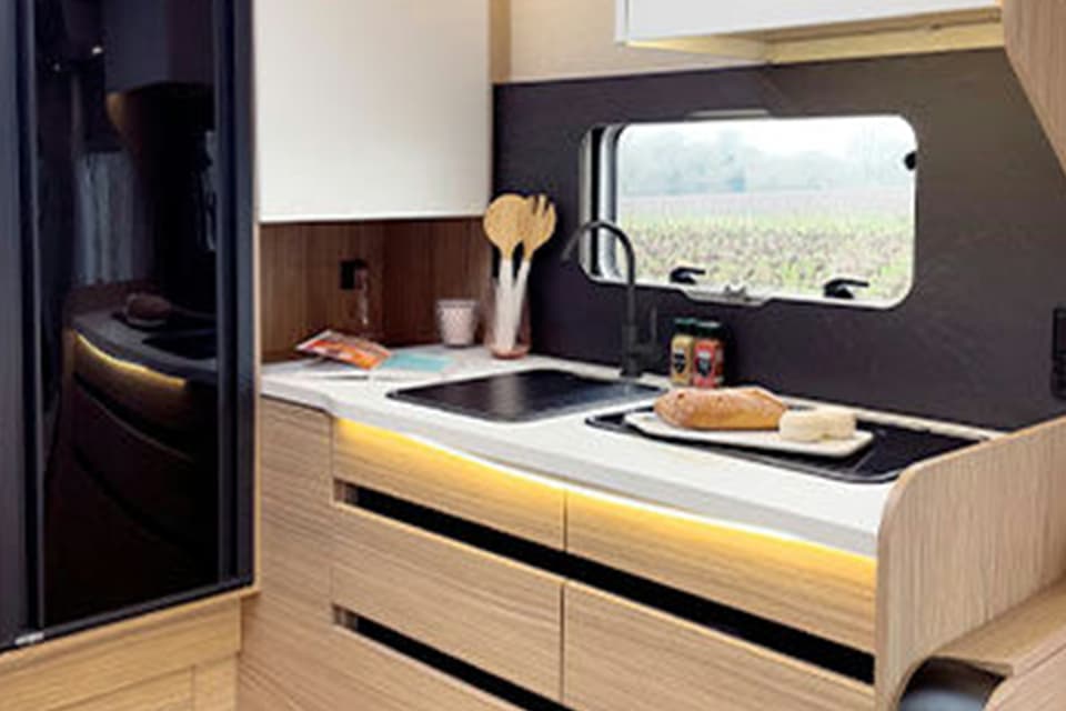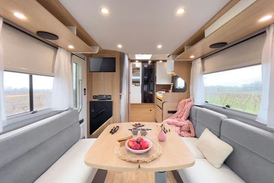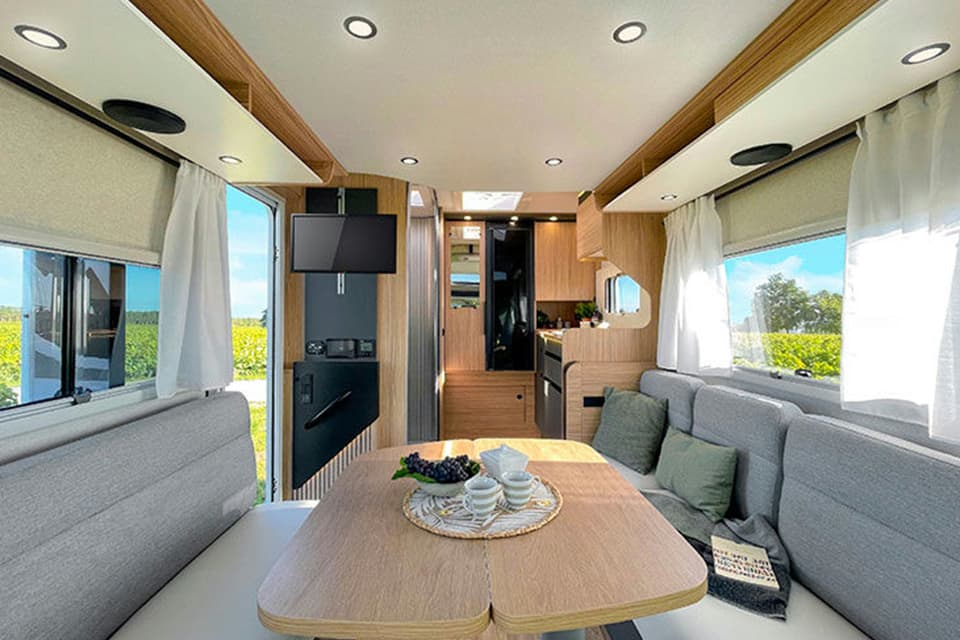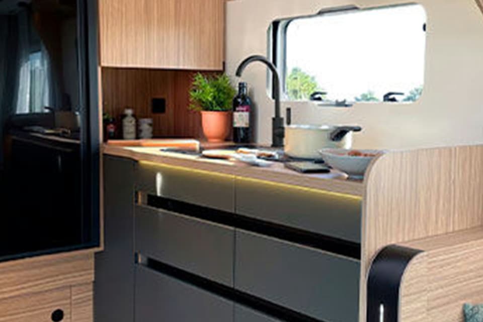 This ultra compact low-profile model features a layout unlike any other on the market, as well as the comfort of a motorhome in a campervan size. Measuring 6.20 m in length, the P620D delivers a new two-person experience in a spacious, user-friendly setting.