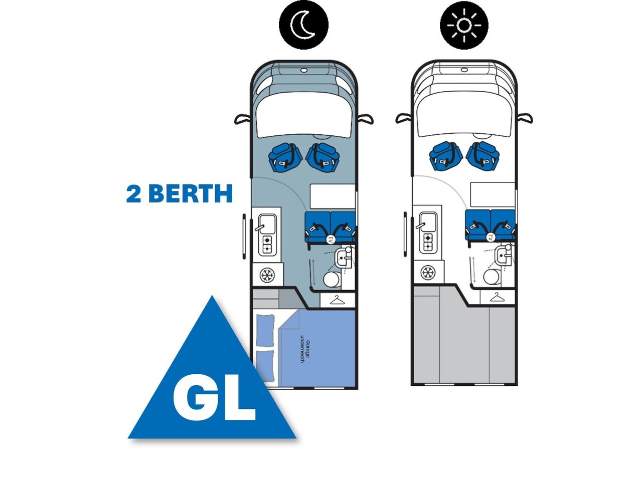 The 2026 ACE lineup features a Fiat Ducato panel van available in 3 layouts, each with an optional pop-top, and coachbuilt motorhome, built on a Ford Transit chassis with four 2-berth layouts, two of which can be upgraded to 4-berth.