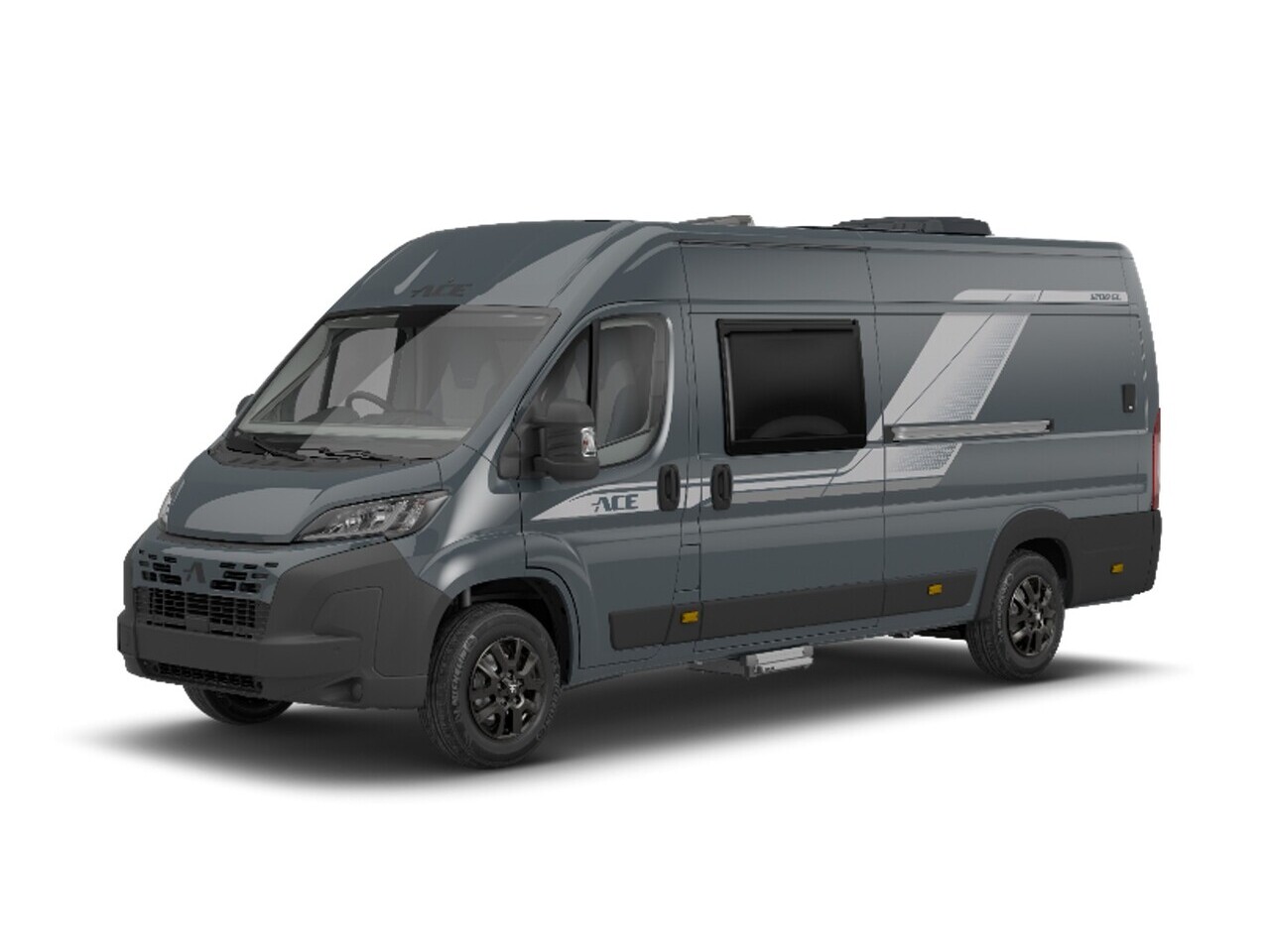 The 2026 ACE lineup features a Fiat Ducato panel van available in 3 layouts, each with an optional pop-top, and coachbuilt motorhome, built on a Ford Transit chassis with four 2-berth layouts, two of which can be upgraded to 4-berth.
