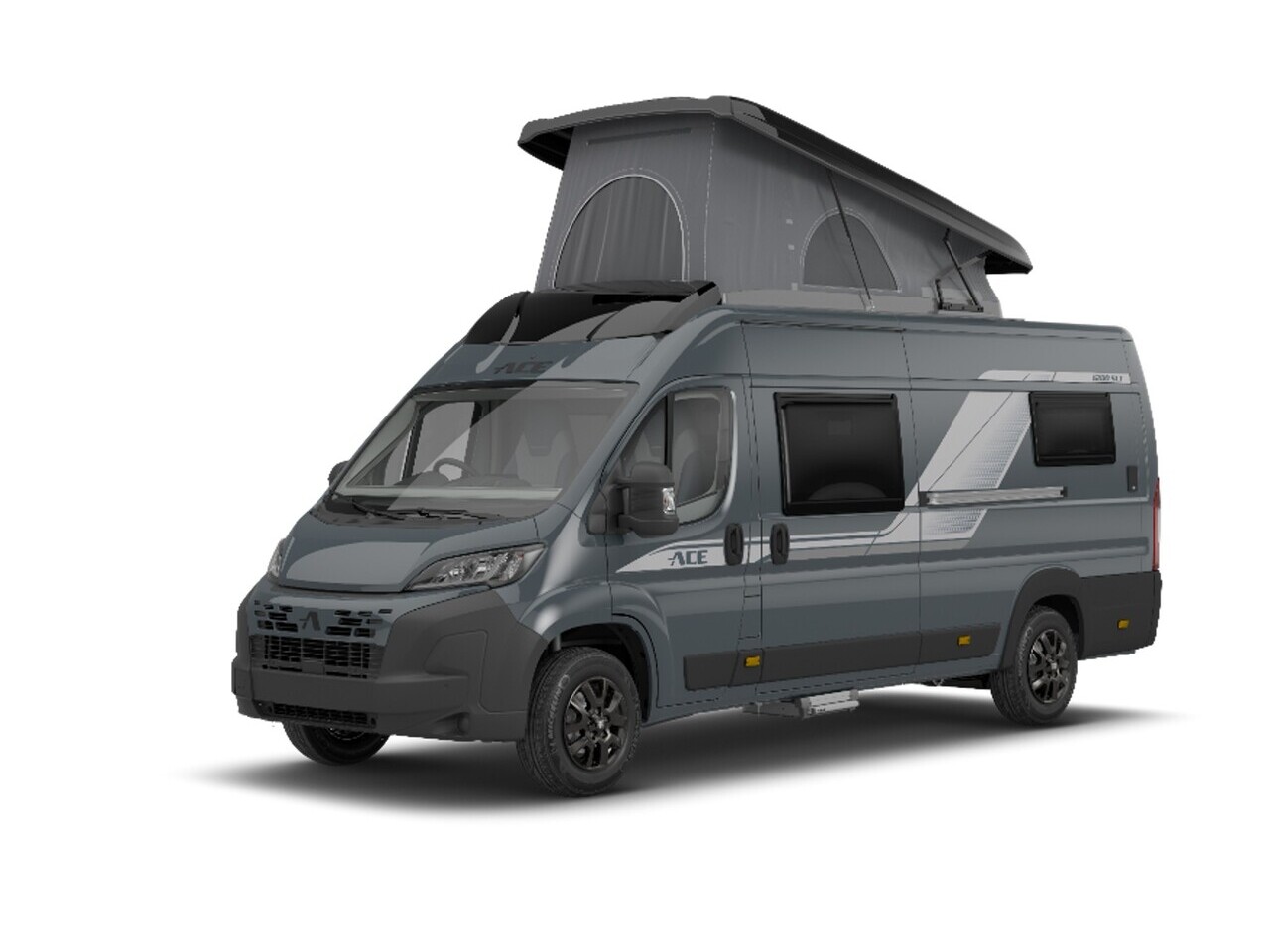 The 2026 ACE lineup features a Fiat Ducato panel van available in 3 layouts, each with an optional pop-top, and coachbuilt motorhome, built on a Ford Transit chassis with four 2-berth layouts, two of which can be upgraded to 4-berth.