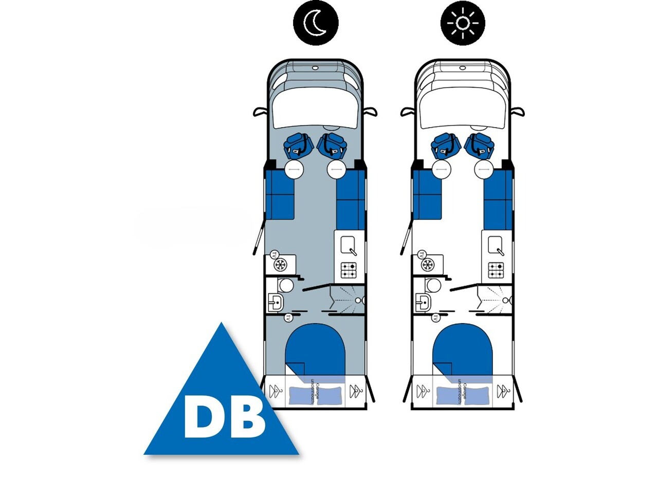 The 2026 ACE lineup features a Fiat Ducato panel van available in 3 layouts, each with an optional pop-top, and coachbuilt motorhome, built on a Ford Transit chassis with four 2-berth layouts, two of which can be upgraded to 4-berth.