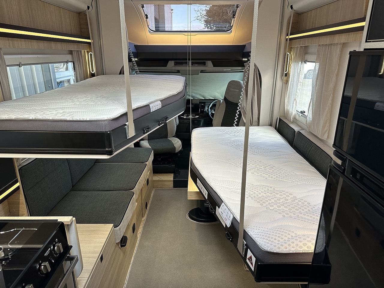 You no longer have to choose between a large lounge and a large bathroom, wide twin beds and an ample garage. The 630 now offers all this and even a wardrobe, thanks to two independent roof beds that let you sleep well at night but leave room for a large living area during the day.