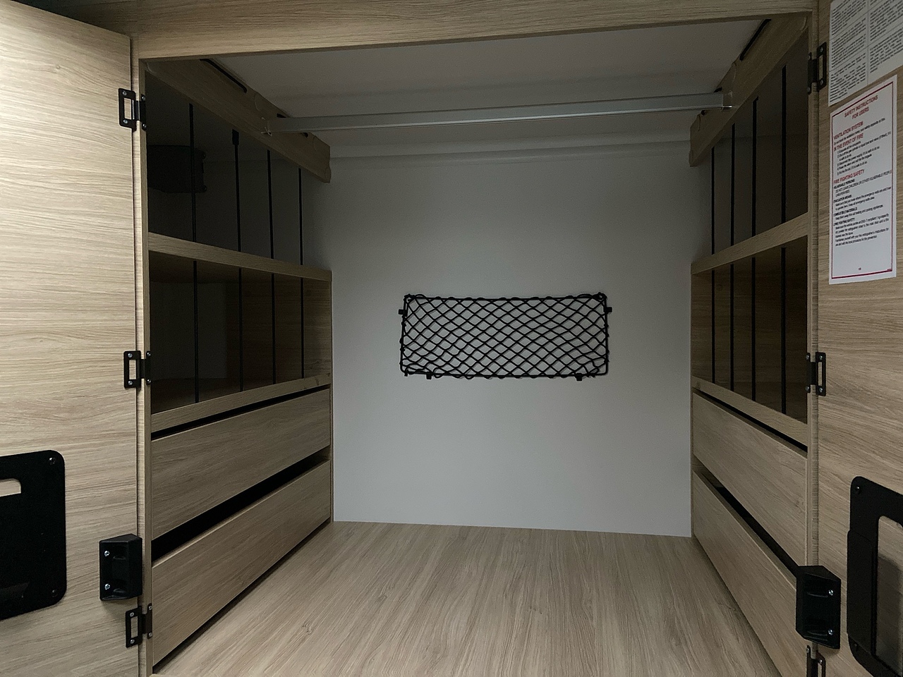 Pack Low Profile, Exterior awning, Solar panel, Entrance door exterior lighting, Door mosquito net, Cab blinds, Extra beds twin beds, 2nd battery installation kit.