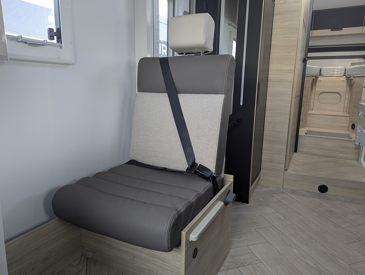 • Swivel seats in the cab, with double armrests and adjustable height