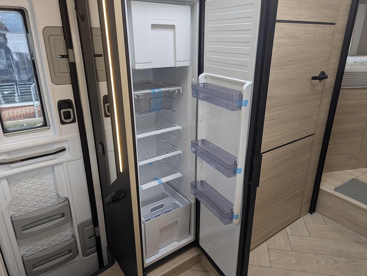 • Luxury entrance door with window and central locking cab/cell