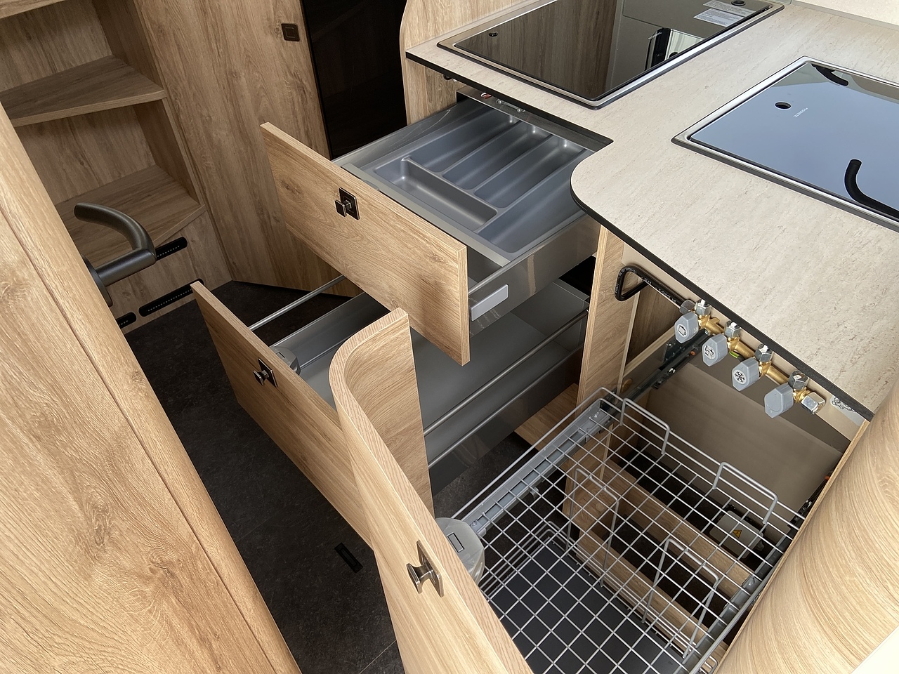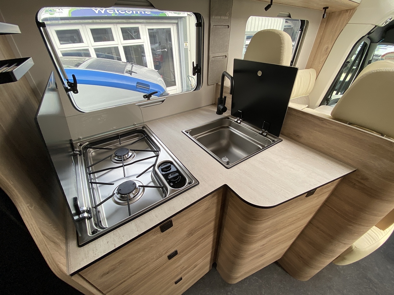 cover for storage compartments, carpet in the driver’s cab,