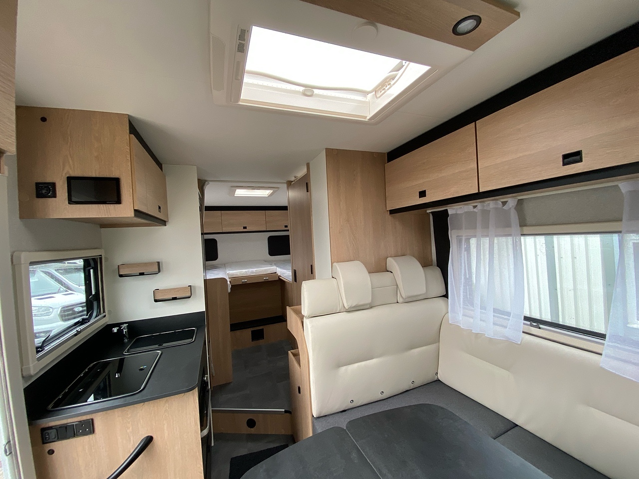 With the 70T, you can enjoy the comfort of a large and beautiful living room in a vehicle of less than 7 metres. Thanks to its modern and bright interior design, this vehicle offers pleasant living spaces. You can also benefit from a real storage capacity.