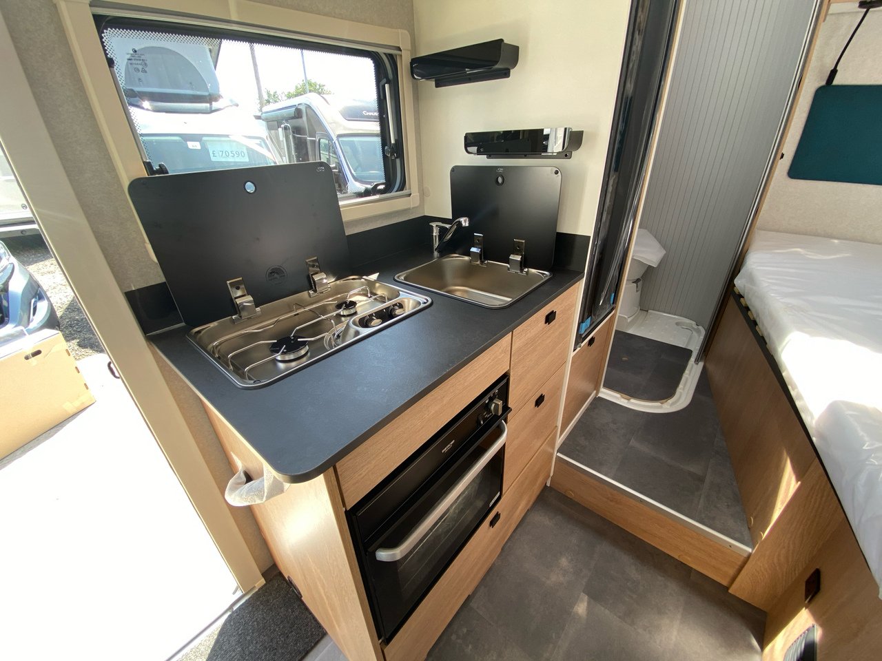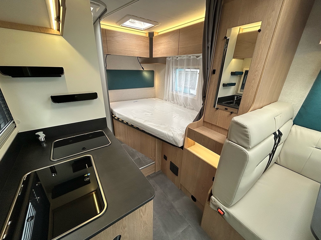 The 60F provides the comfort of a motorhome in the 6-metre size of a campervan. It has everything: a great lounge, practical kitchen, separate bedroom, lovely bathroom and good storage. This is a must-have for those wanting an ultra-compact vehicle.