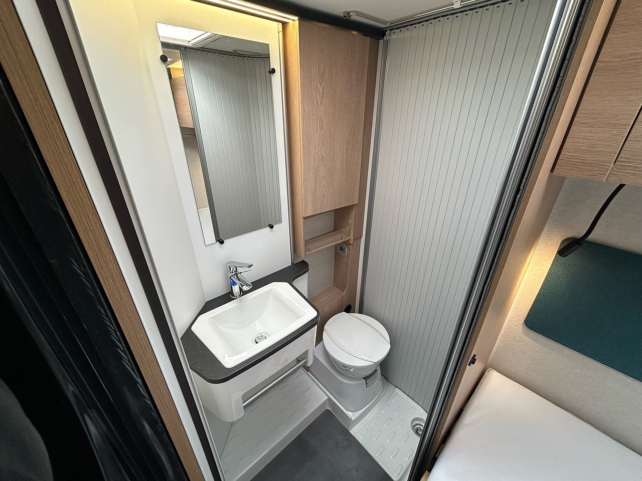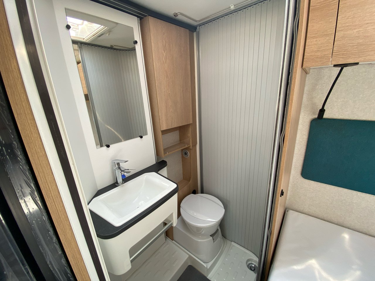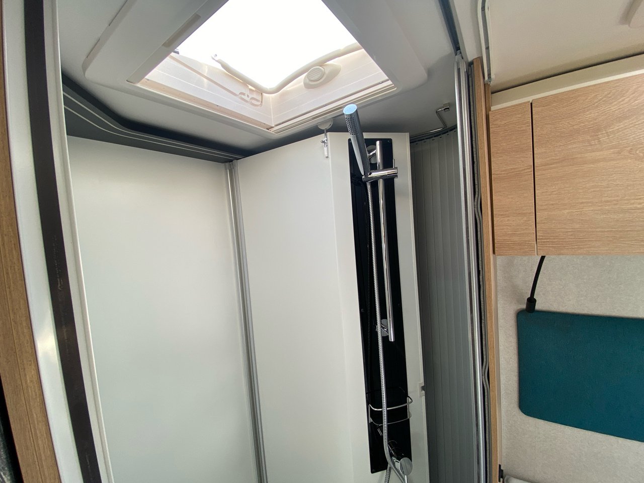BATHROOM AND TOILET, Folding towel rack, Shower column with soap dish, Skylight with blind and flyscreen in bathroom and shower, Toilet with removable cassette on castors