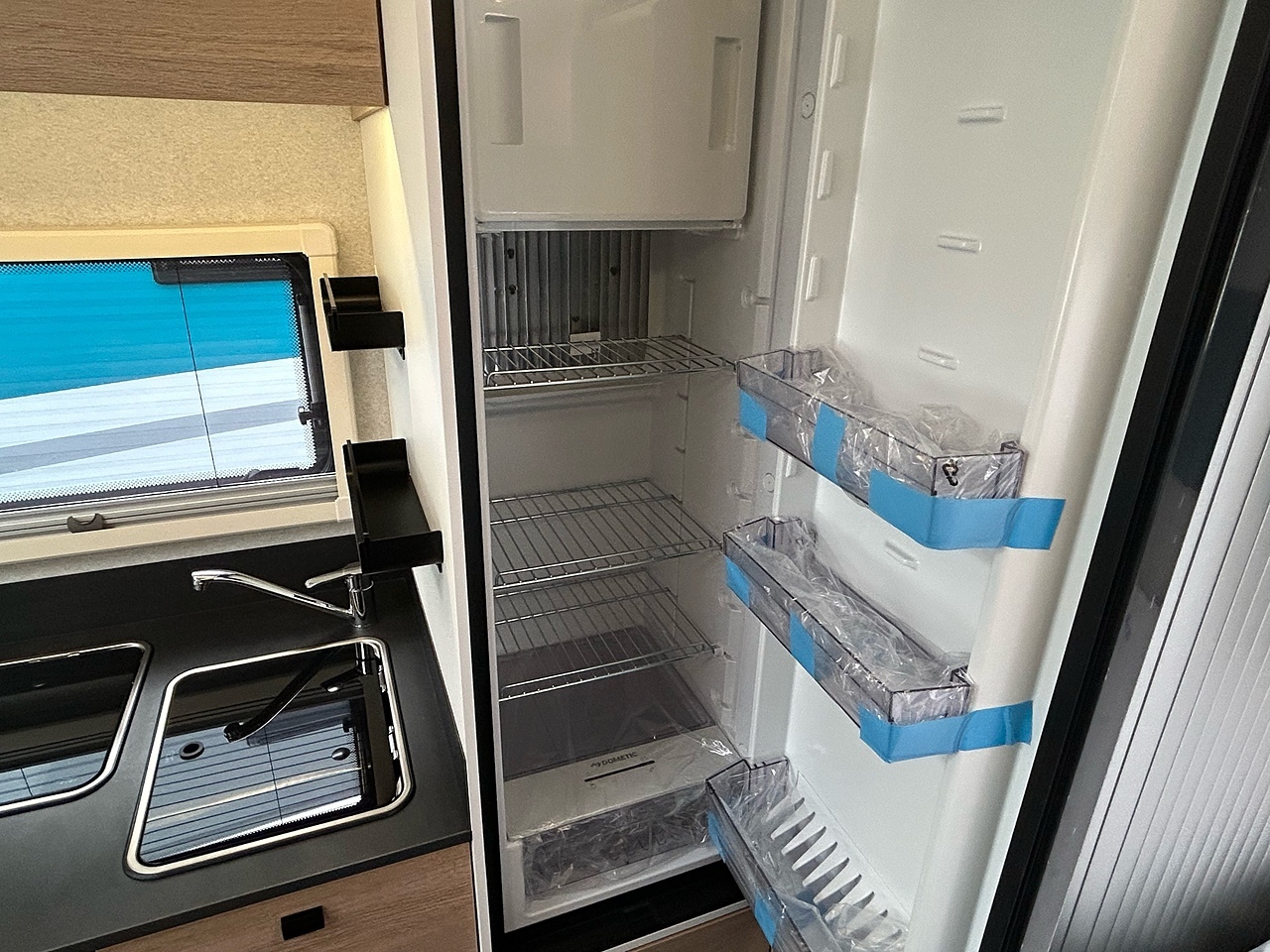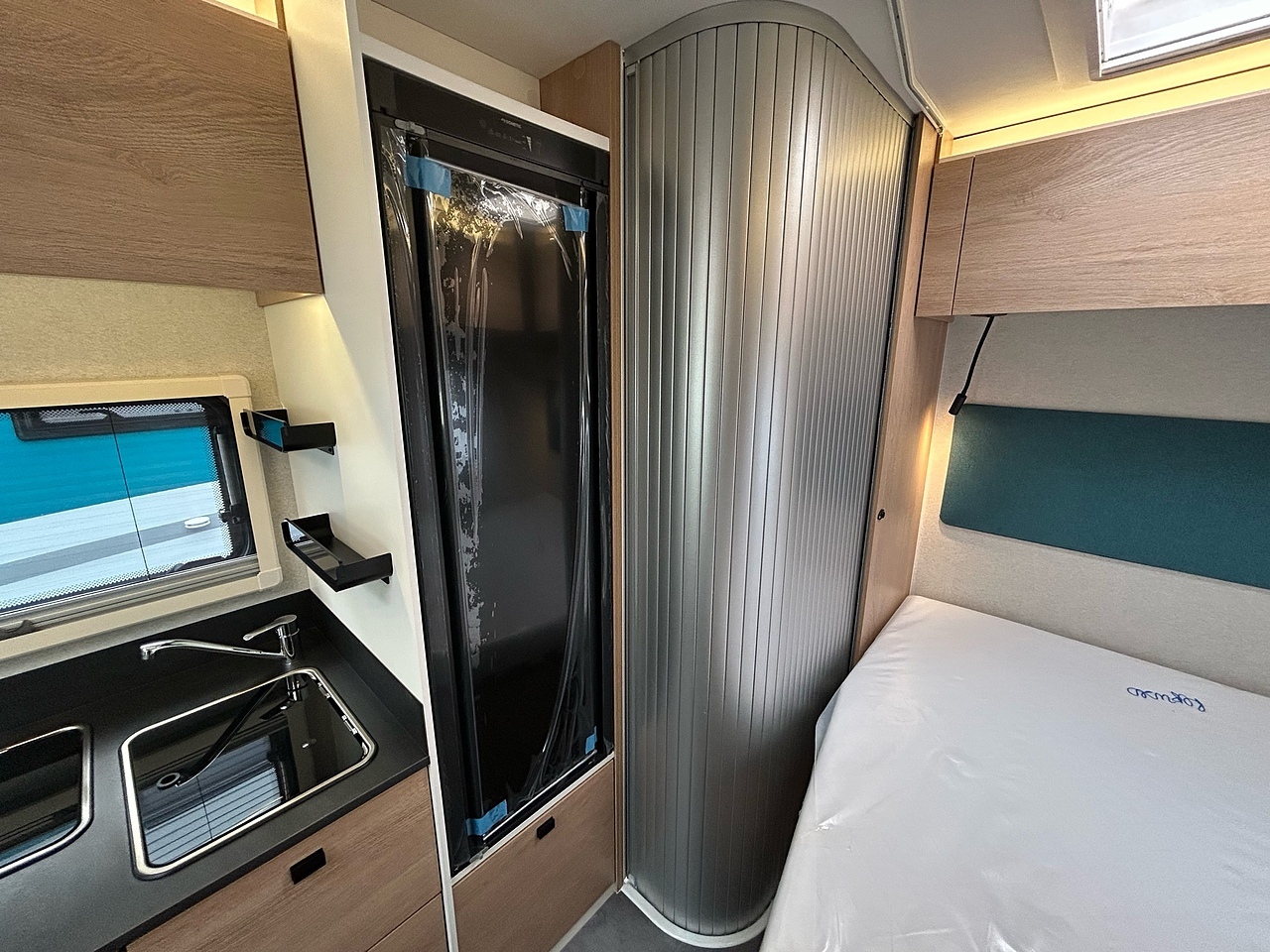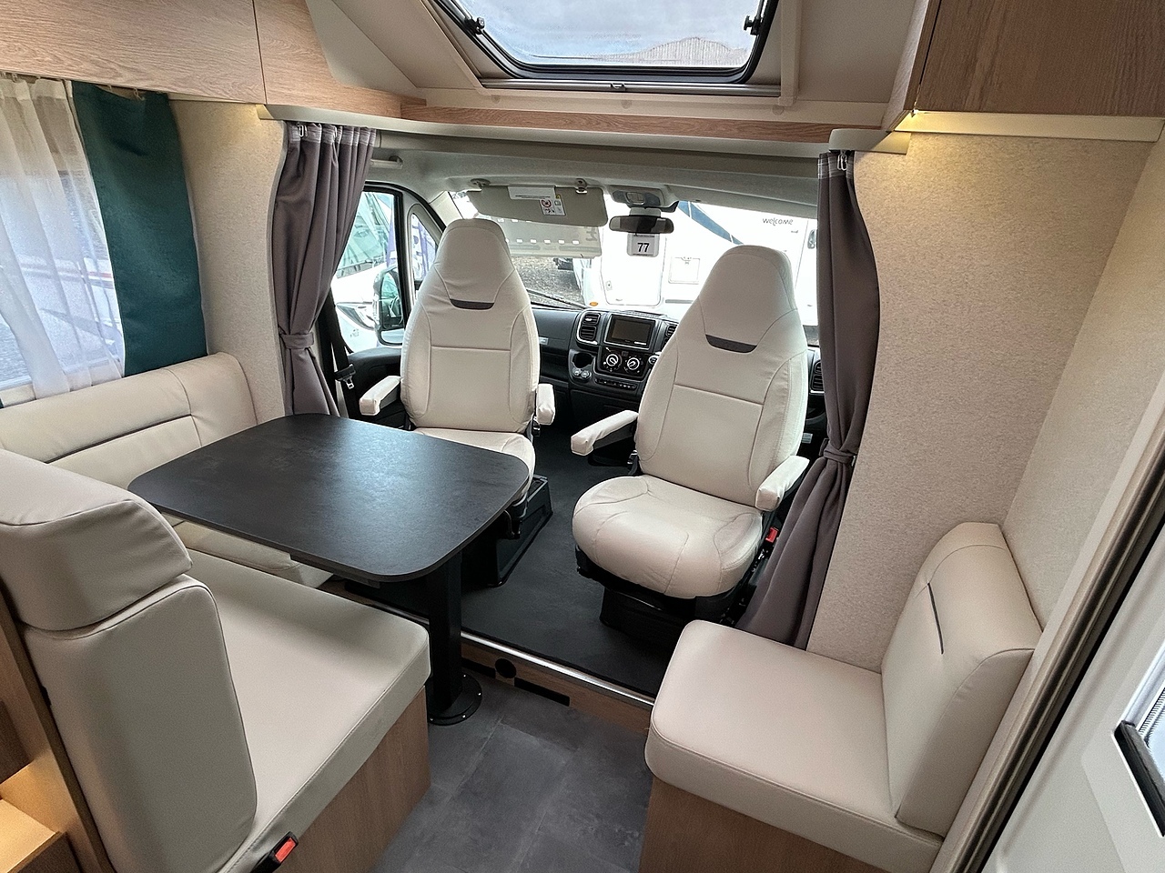 STRUCTURE, Double-glazed living area windows with concertina blind and flyscreen, Foldaway electric entry step, LED exterior lighting, living area door with 1-point locking, window and flyscreen, Opening Skydome, Polyester exterior side panels, Wrap-around fabric cab blinds