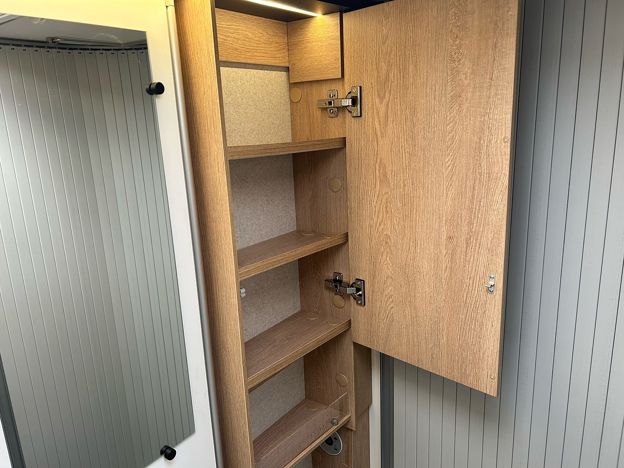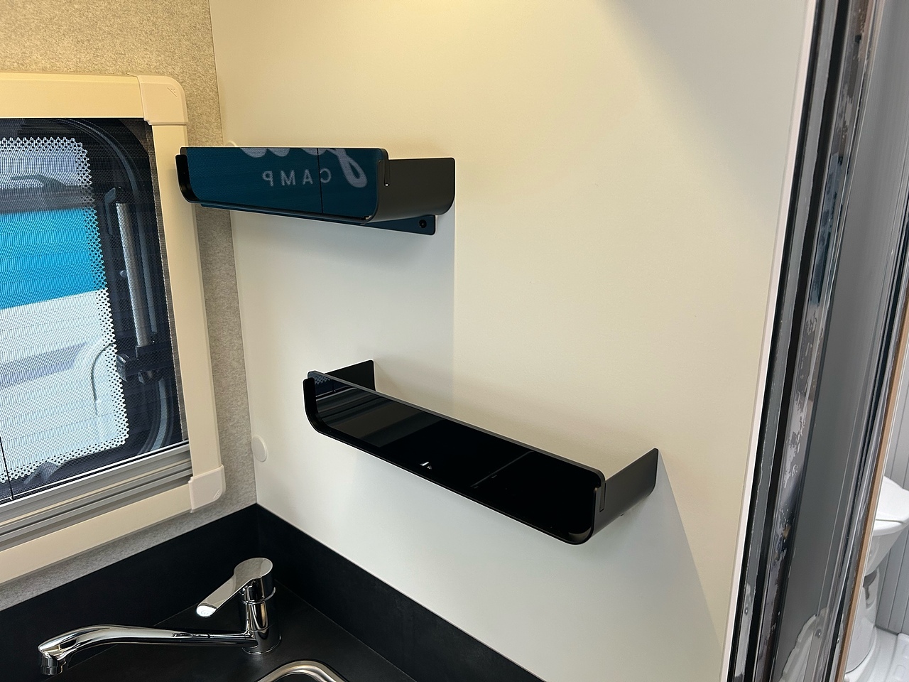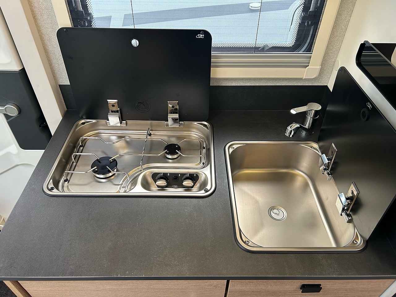 STRUCTURE, Double-glazed living area windows with concertina blind and flyscreen, Foldaway electric entry step, LED exterior lighting, living area door with 1-point locking, window and flyscreen, Opening Skydome, Polyester exterior side panels, Wrap-around fabric cab blinds