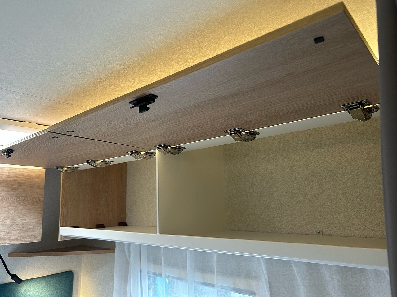 BEDROOM, 230 V power outlet and USB port, Bed insert between twin beds, with ladder (170 cm length), Comfortable mattress, Dividing curtain, Slatted bed base