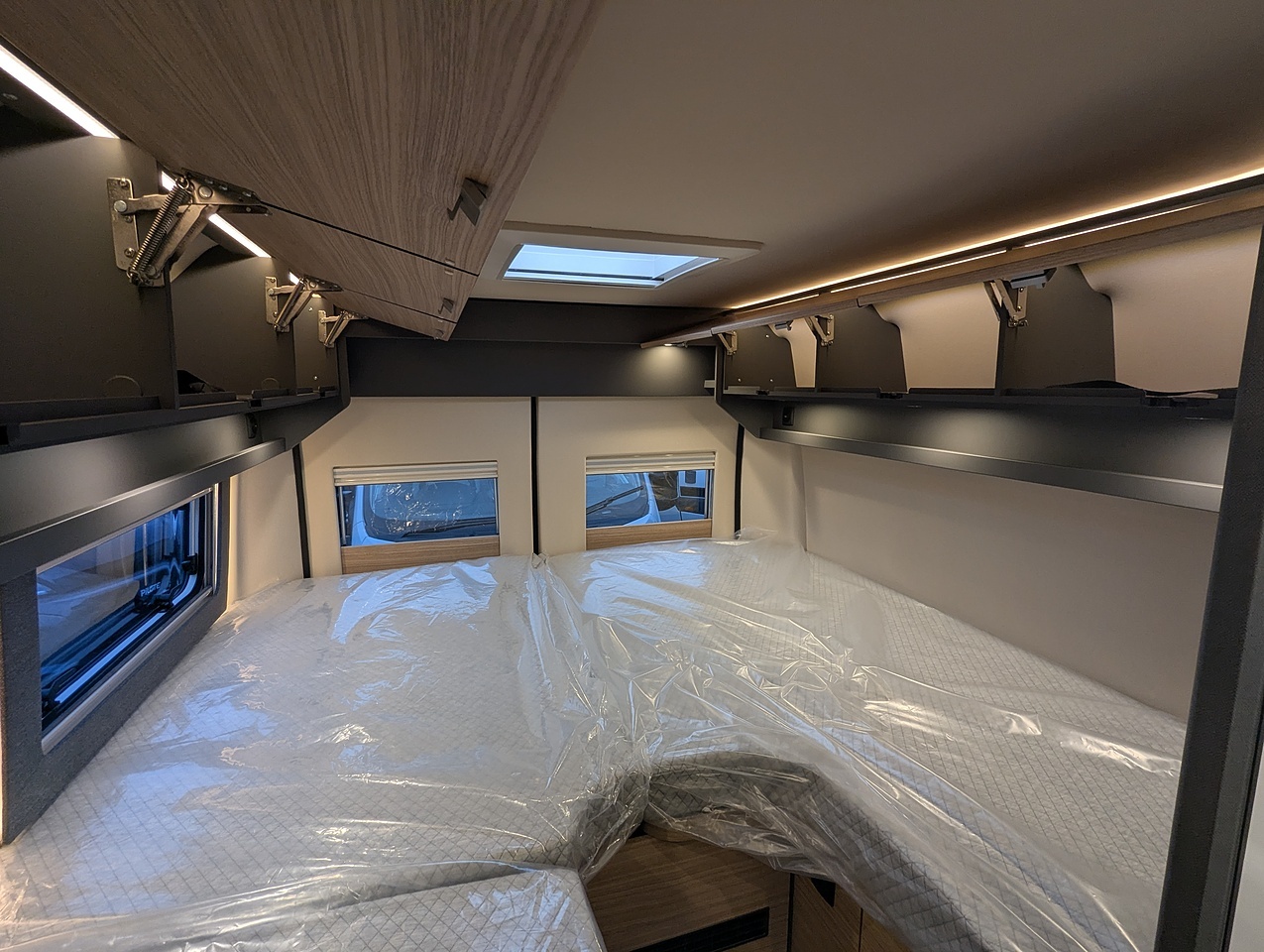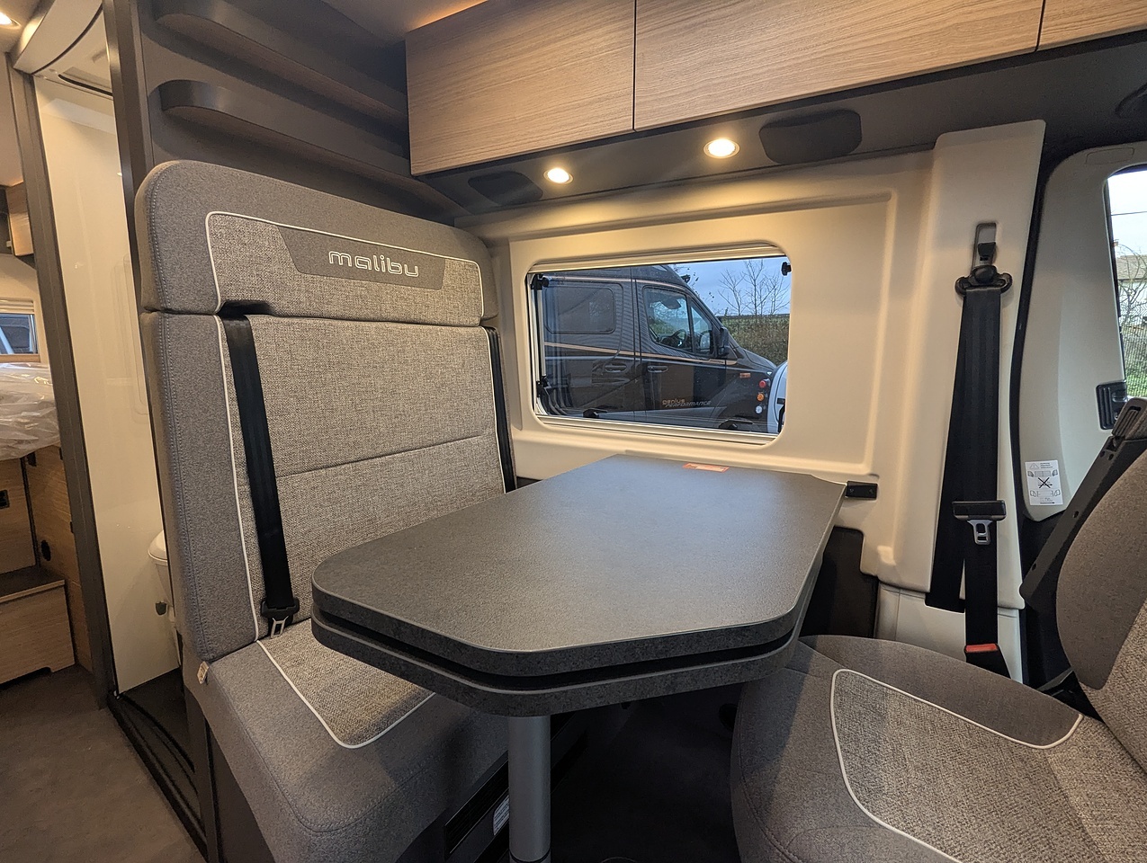 Modernity and clarity define the new interior design of the Malibu relax. While the "Aurelia" style range combines fresh accent colours with warm contrasts, the high-quality furniture construction ensures a clean, modern look with handleless overhead storage cabinet fronts. This is complemented by a grey-flecked floor covering, elegant microfibre lining on the walls and roof, and a perfectly coordinated upholstery collection to provide an interior that boasts a thoroughly contemporary look.