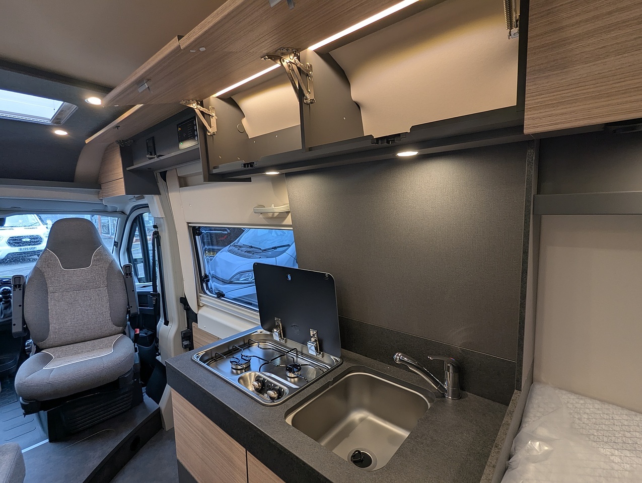 When embarking on a camping trip, you should already feel that sense of freedom from the moment you step into the camper van. That's why, with its innovative layout and increased internal height, the Malibu Relax provides an unparalleled feeling of space and all the room to move that you need. The huge entrance area ensures exceptional comfort when getting in and out and allows for a completely new economy of space complete with uninterrupted view from inside to outside.