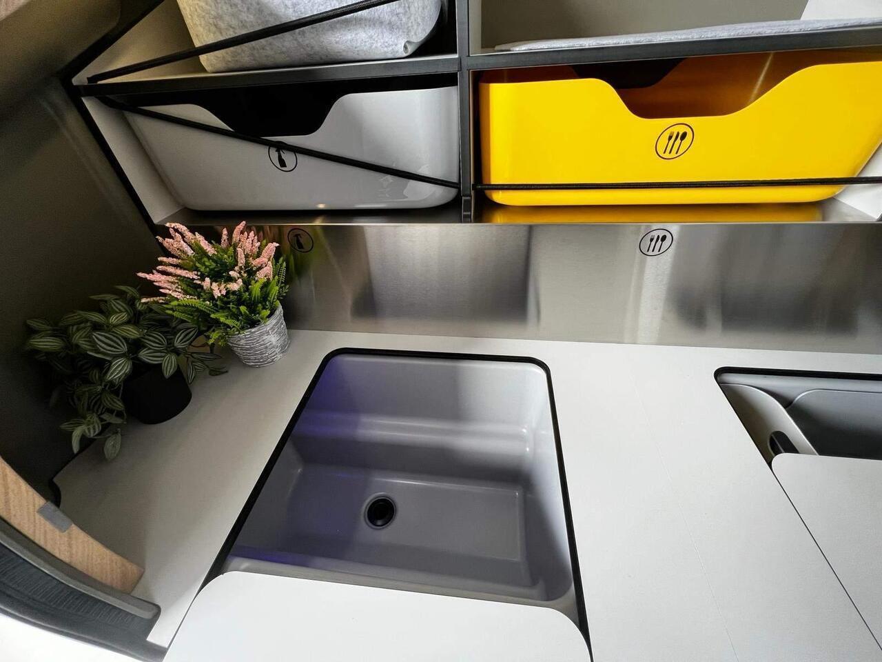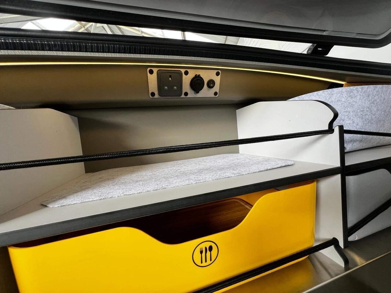 The MINK-E is lighter than the other Mink Campers, creating less resistance whilst being pulled and fully operated on electricity.