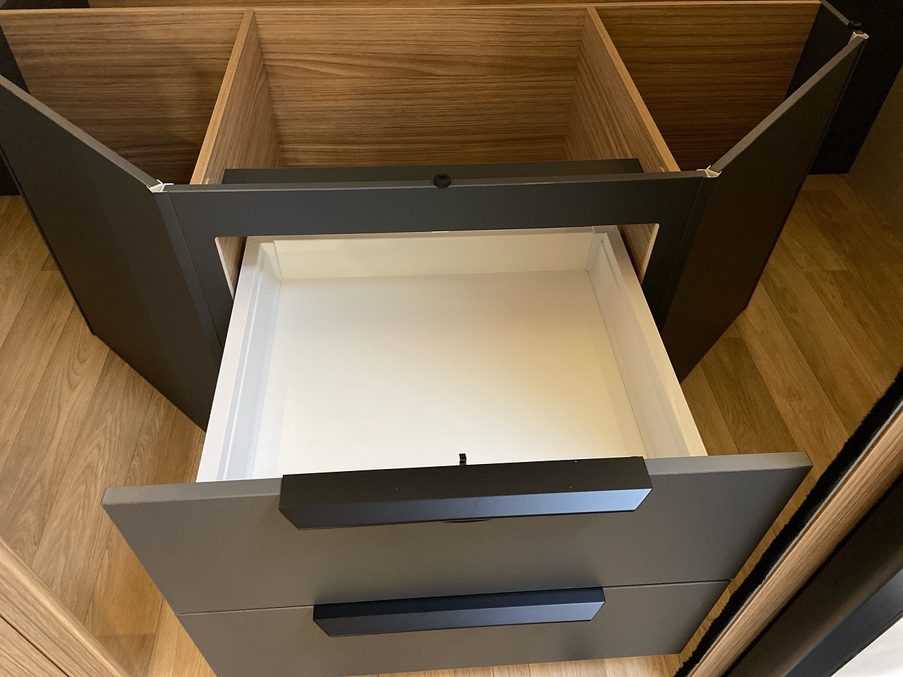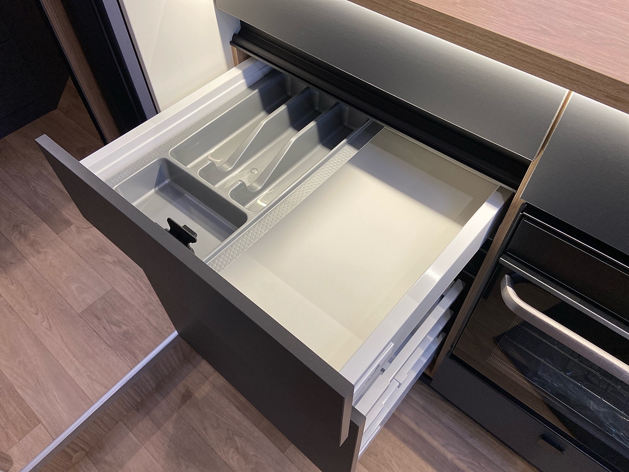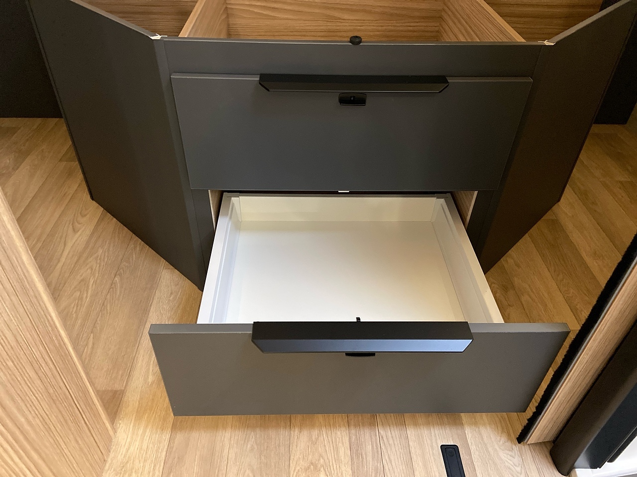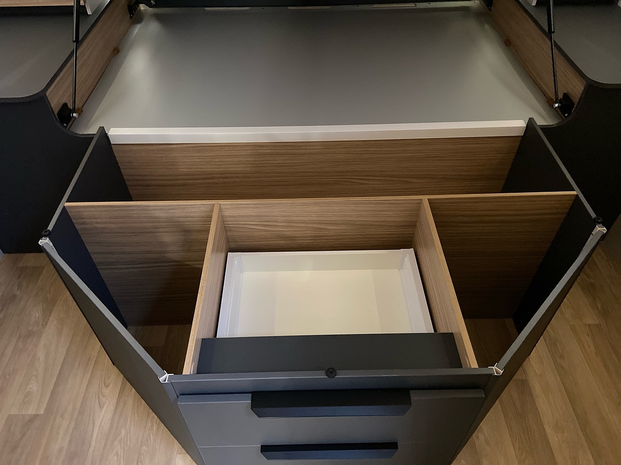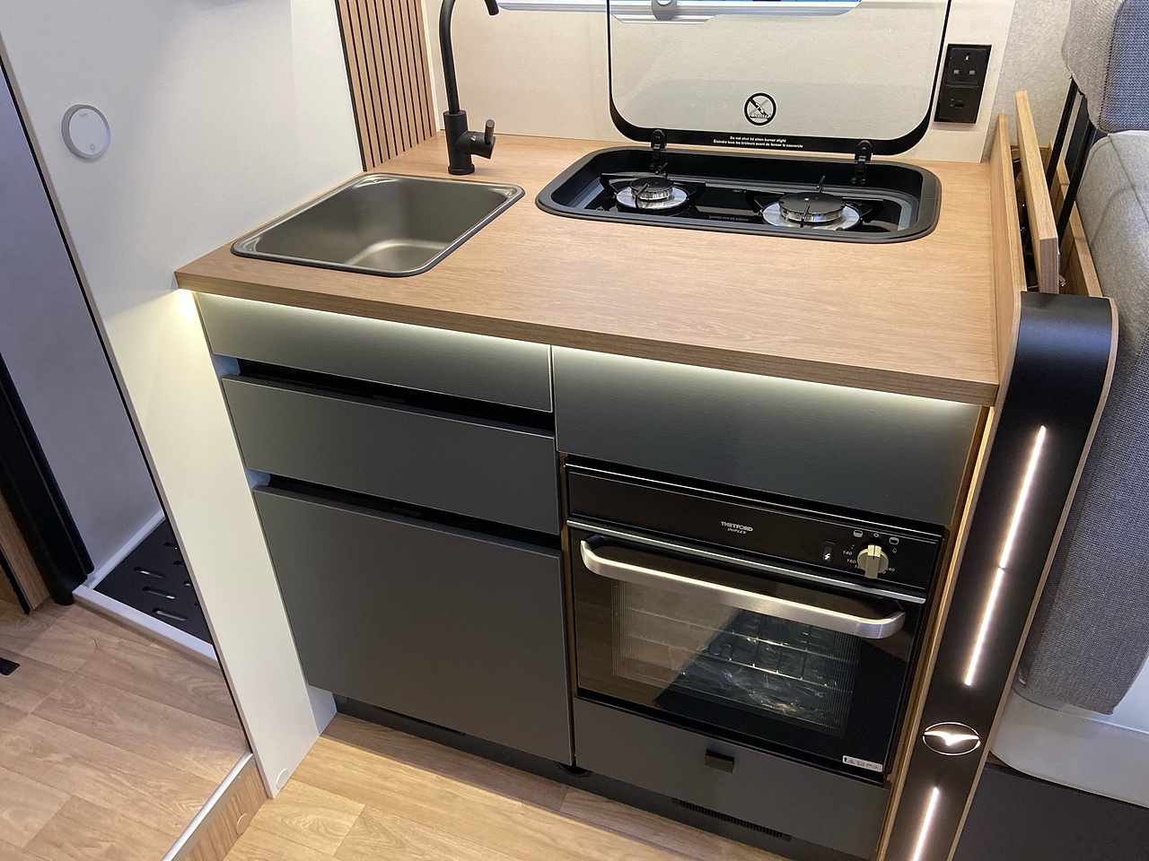 You will love its dynamic, modern look. The easy-access gas cylinder compartment has a shelf which can be lowered, making it easy to change your bottles. Its wall-to-wall double 15 cm floor provides great insulation as well as additional storage.