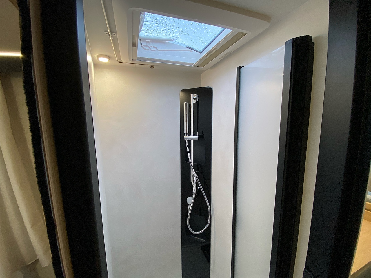 This vehicle features a comfortable shower separate from the bathroom. Sliding partitions close it off from the bedroom and lounge, giving you a perfectly private space.