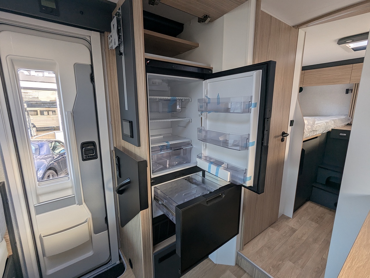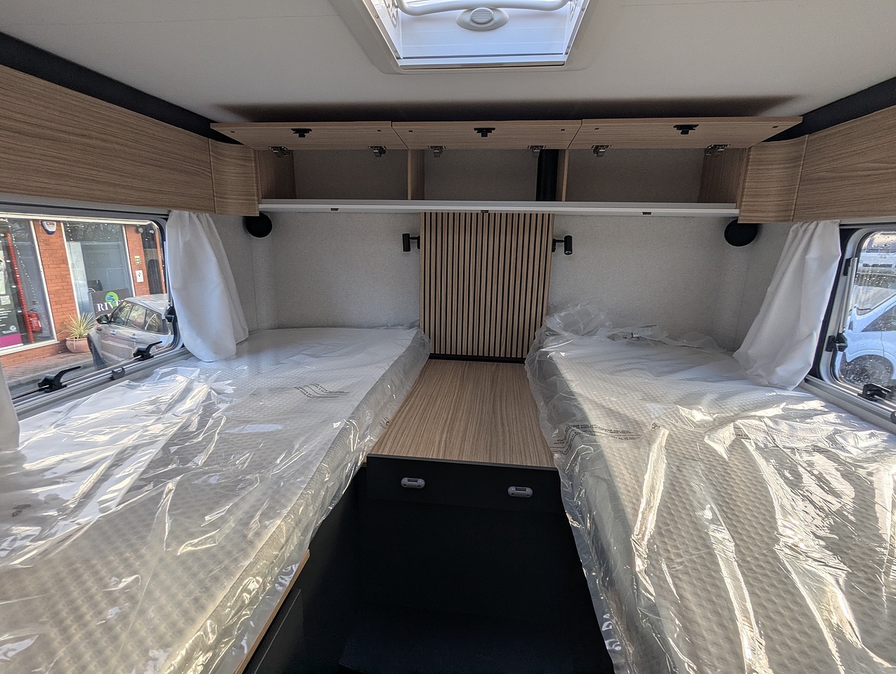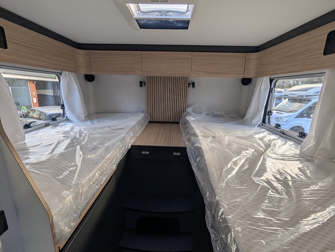 The separate storage hold allows you to store your belongings safely. Thanks to the raised twin beds above, the storage area boasts excellent height, ideal for transporting tall and bulky items. The doors are equipped with double compression latches which provide an air- and water- tight seal.
