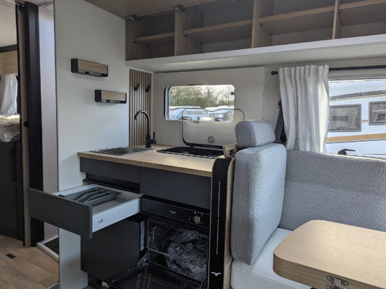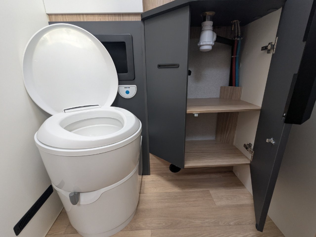 You will love its dynamic, modern look. The easy-access gas cylinder compartment has a shelf which can be lowered, making it easy to change your bottles. Its wall-to-wall double 15 cm floor provides great insulation as well as additional storage.