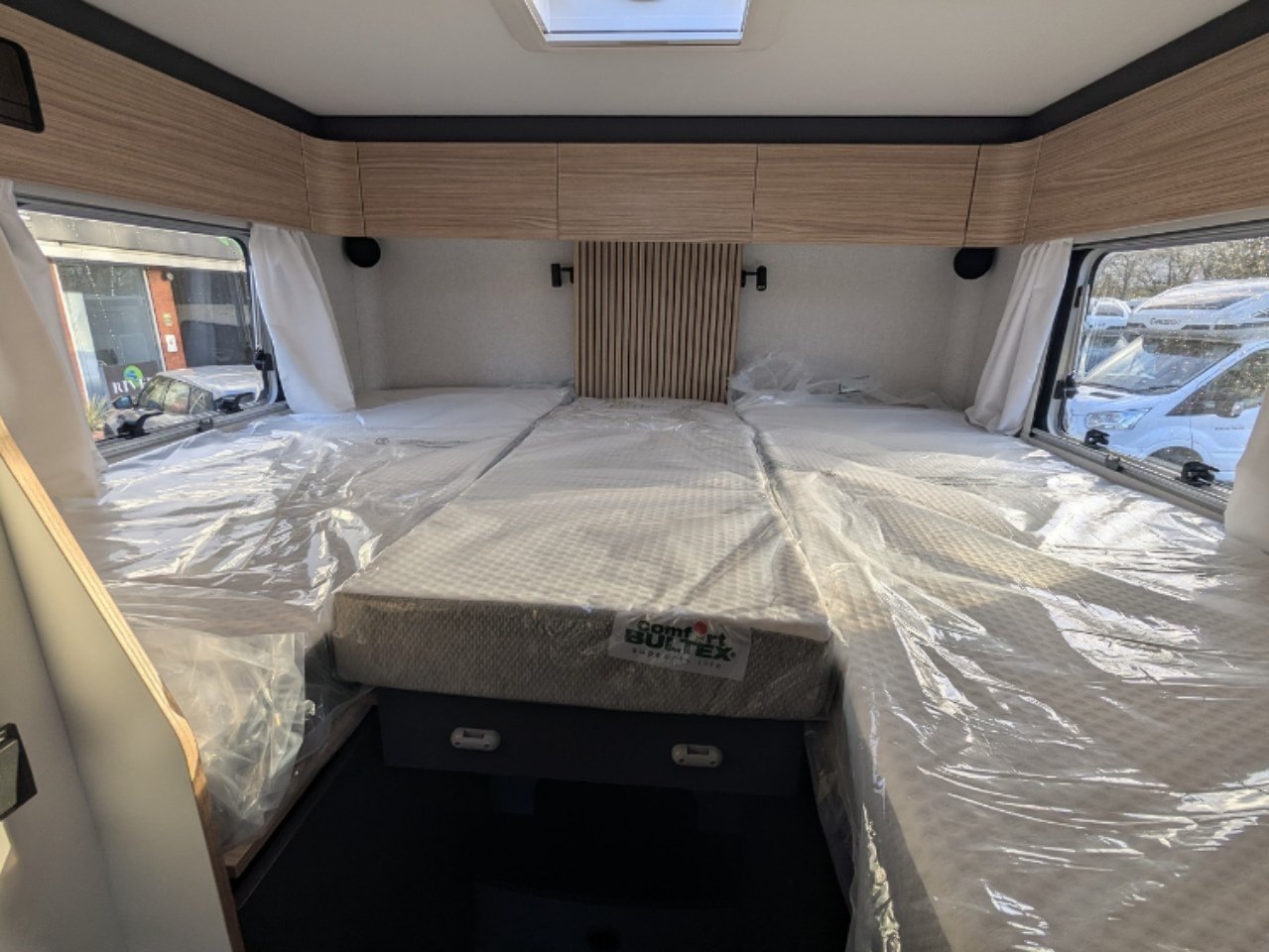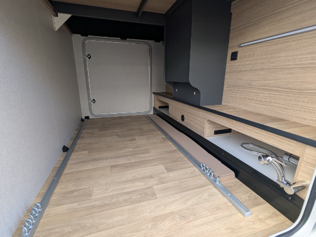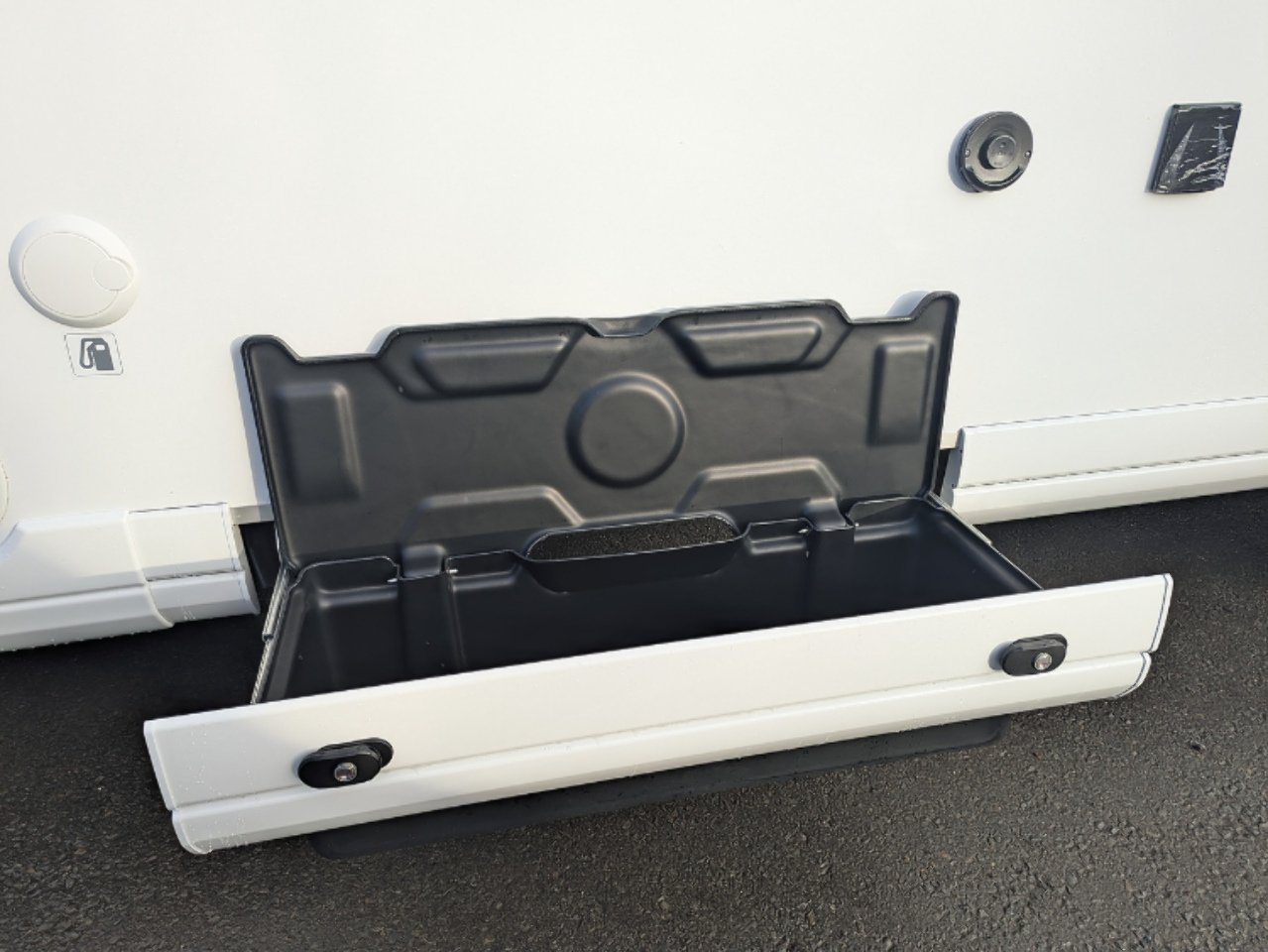 The separate storage hold allows you to store your belongings safely. Thanks to the raised twin beds above, the storage area boasts excellent height, ideal for transporting tall and bulky items. The doors are equipped with double compression latches which provide an air- and water- tight seal.