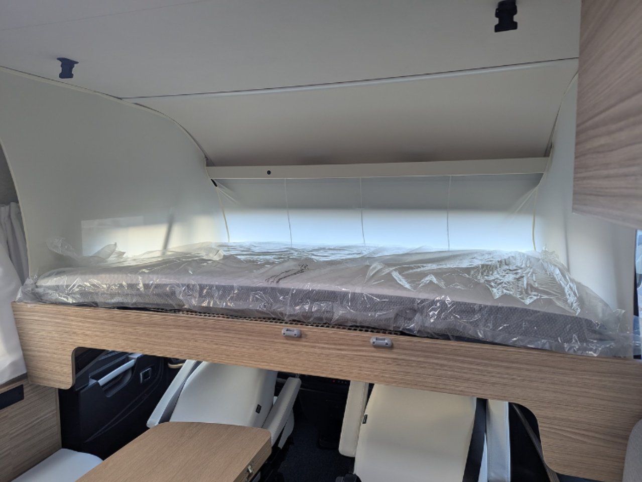 Over the hold, choose between a king-size bed thanks to the extra bed insert (included as standard) or the low twin bed version (to access the beds without any ladder) and adapt your vehicle to suit your needs. Under the high-level beds, you’ll find a vast storage hold which can be accessed from either side as well as wardrobes at the foot of the beds.
