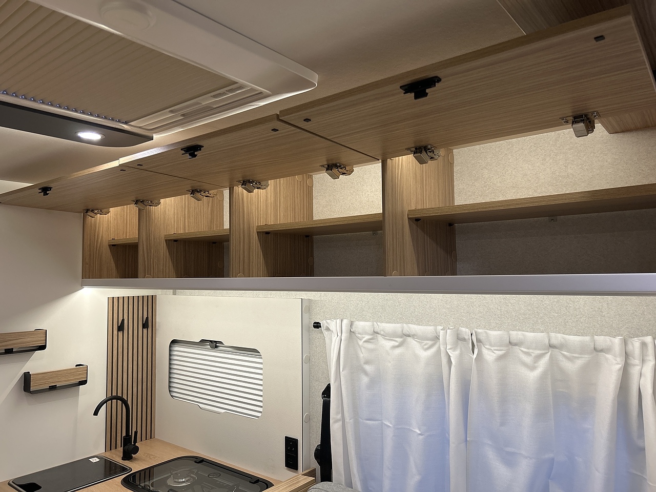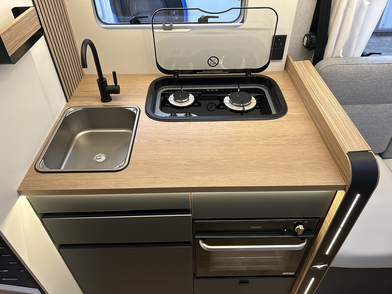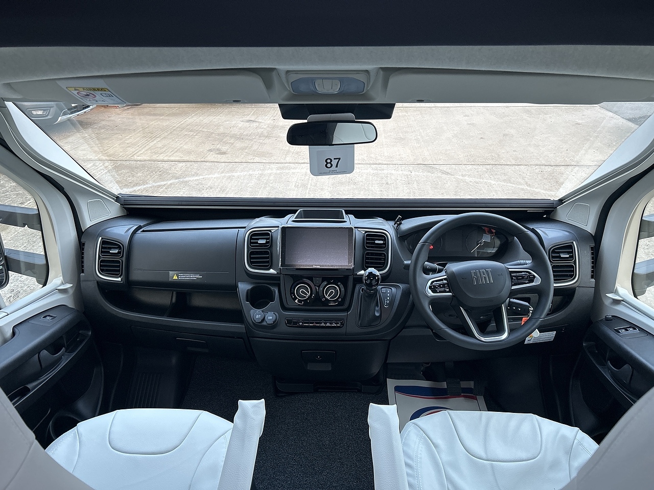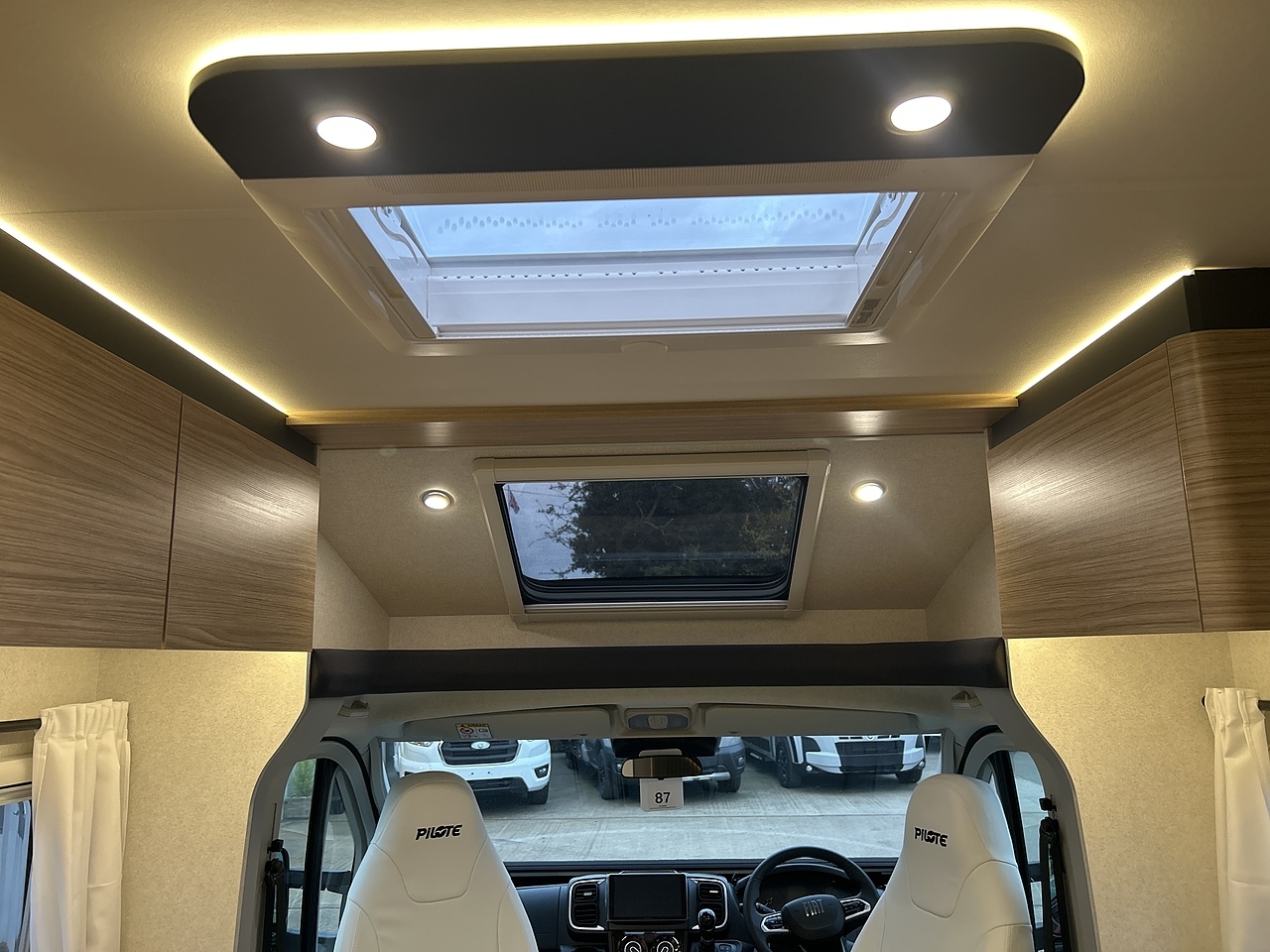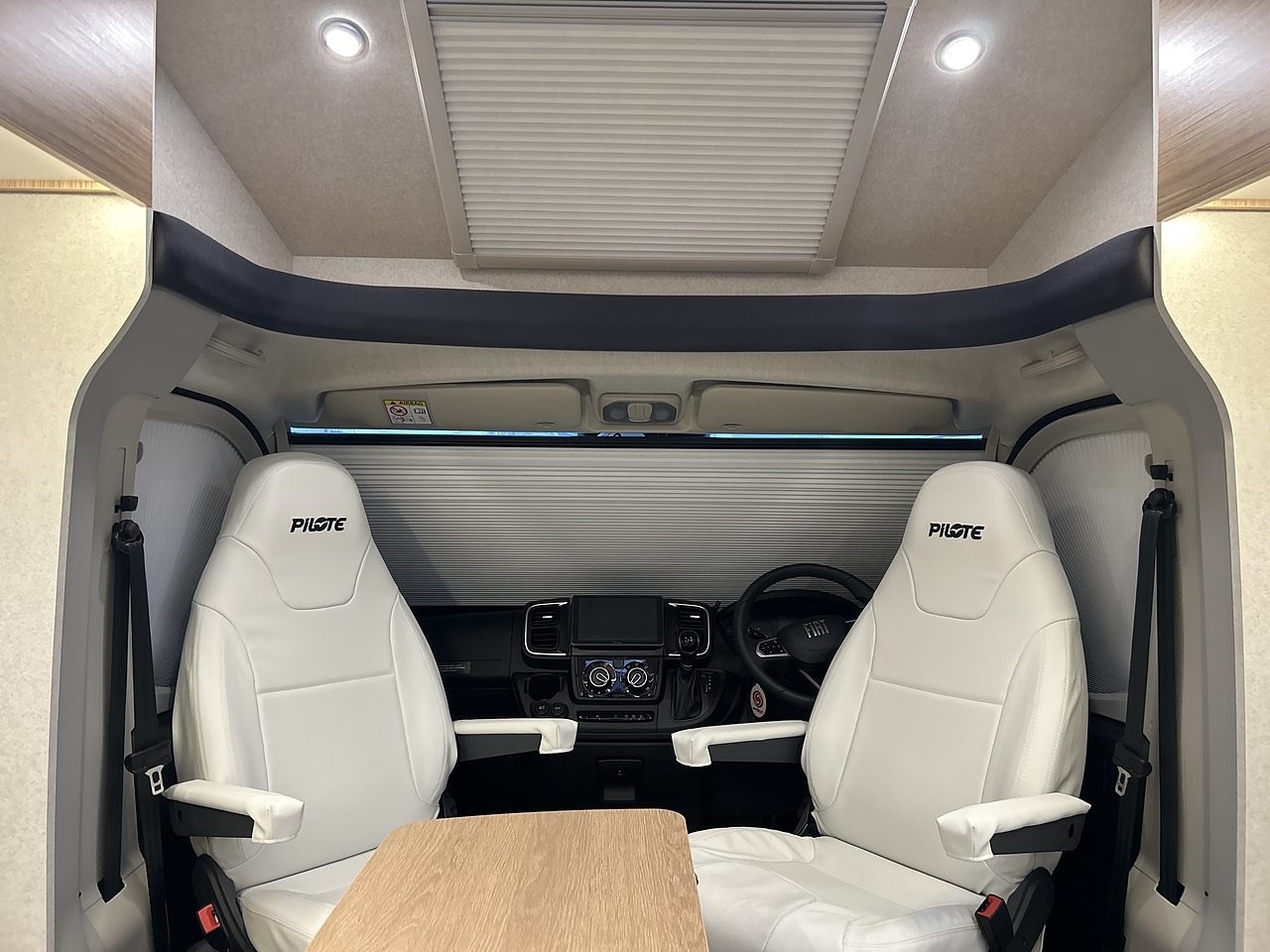 Large convivial lounge, with a capacity of 5 people. The living room is bright thanks to the skydome, a real panoramic roof. The folding and sliding table makes it easy to move around.