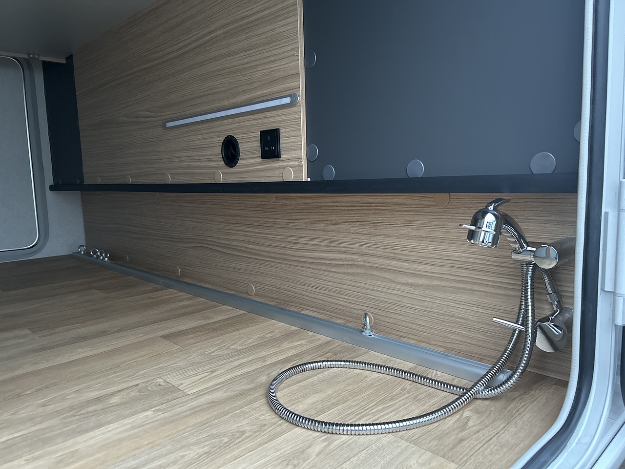 The kitchen is pleasant since it has a large worktop and quality equipment, including an electrically operated compression refrigerator, for optimal temperature rise and maintenance. The windows and the numerous LED lights guarantee beautiful light day and night.