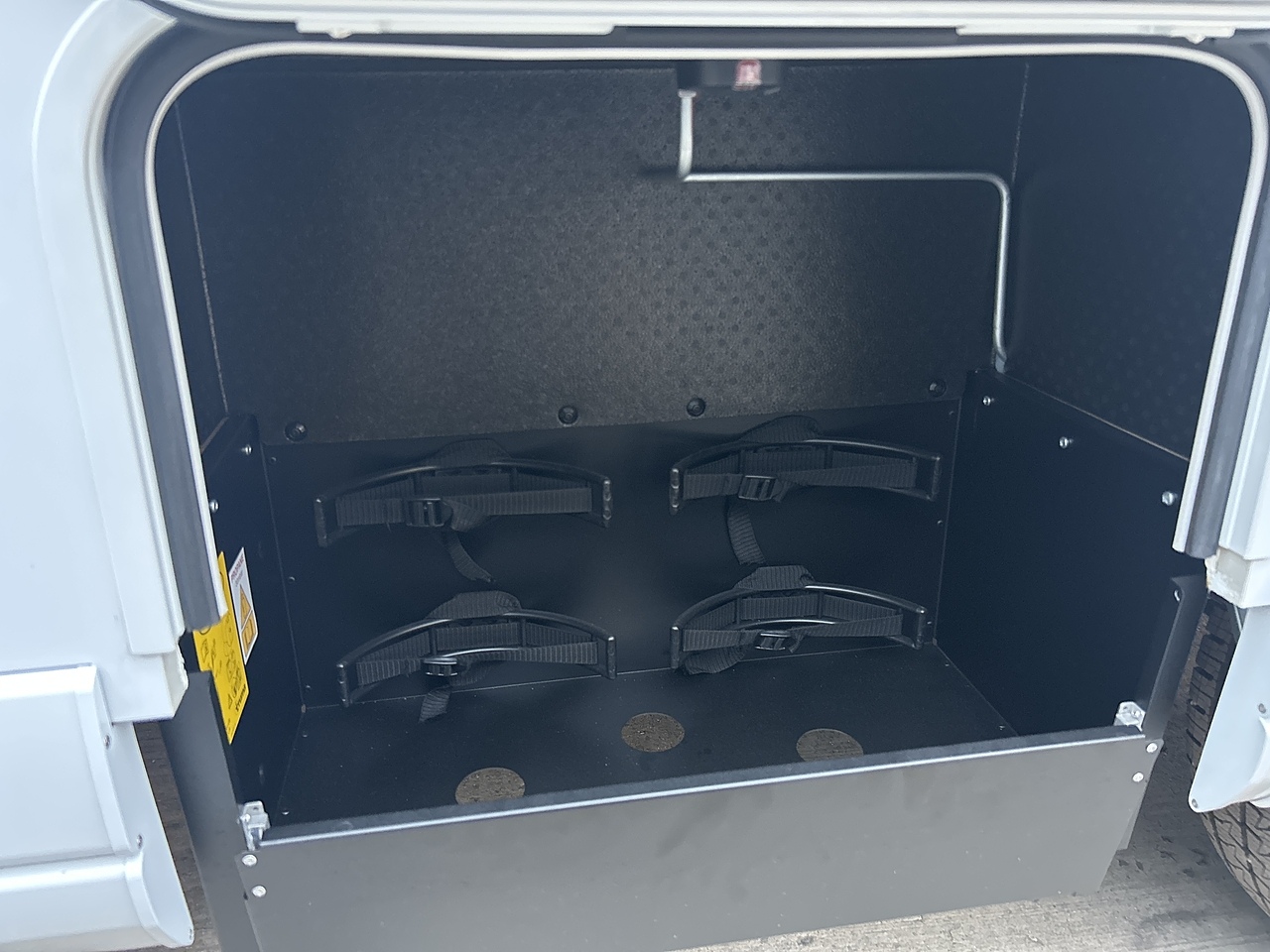 The large through compartment at the rear of the vehicle is accessible via 2 side doors. Low enough, it makes loading and unloading easier.