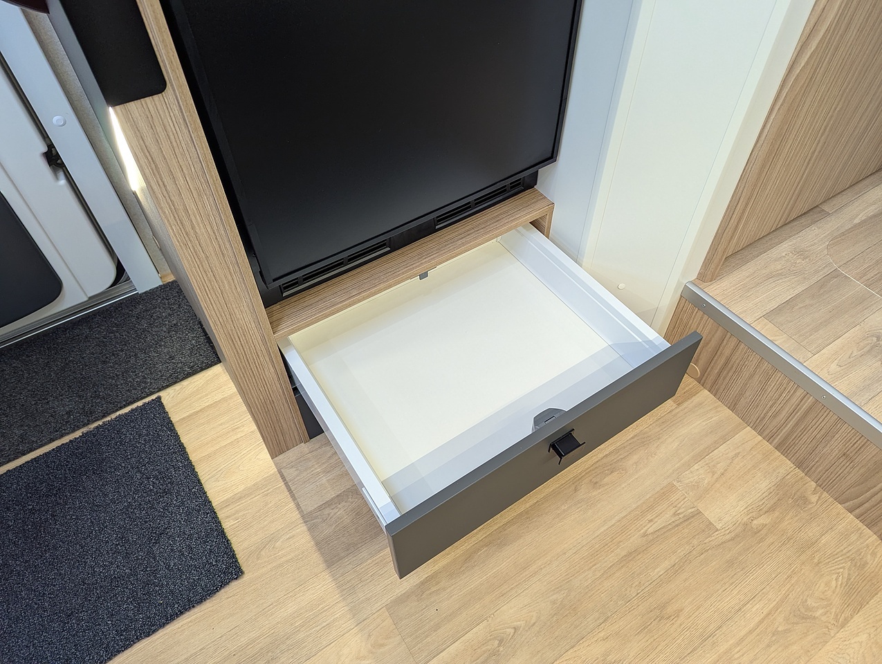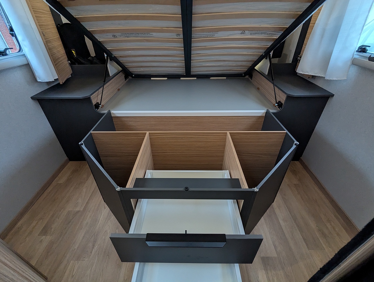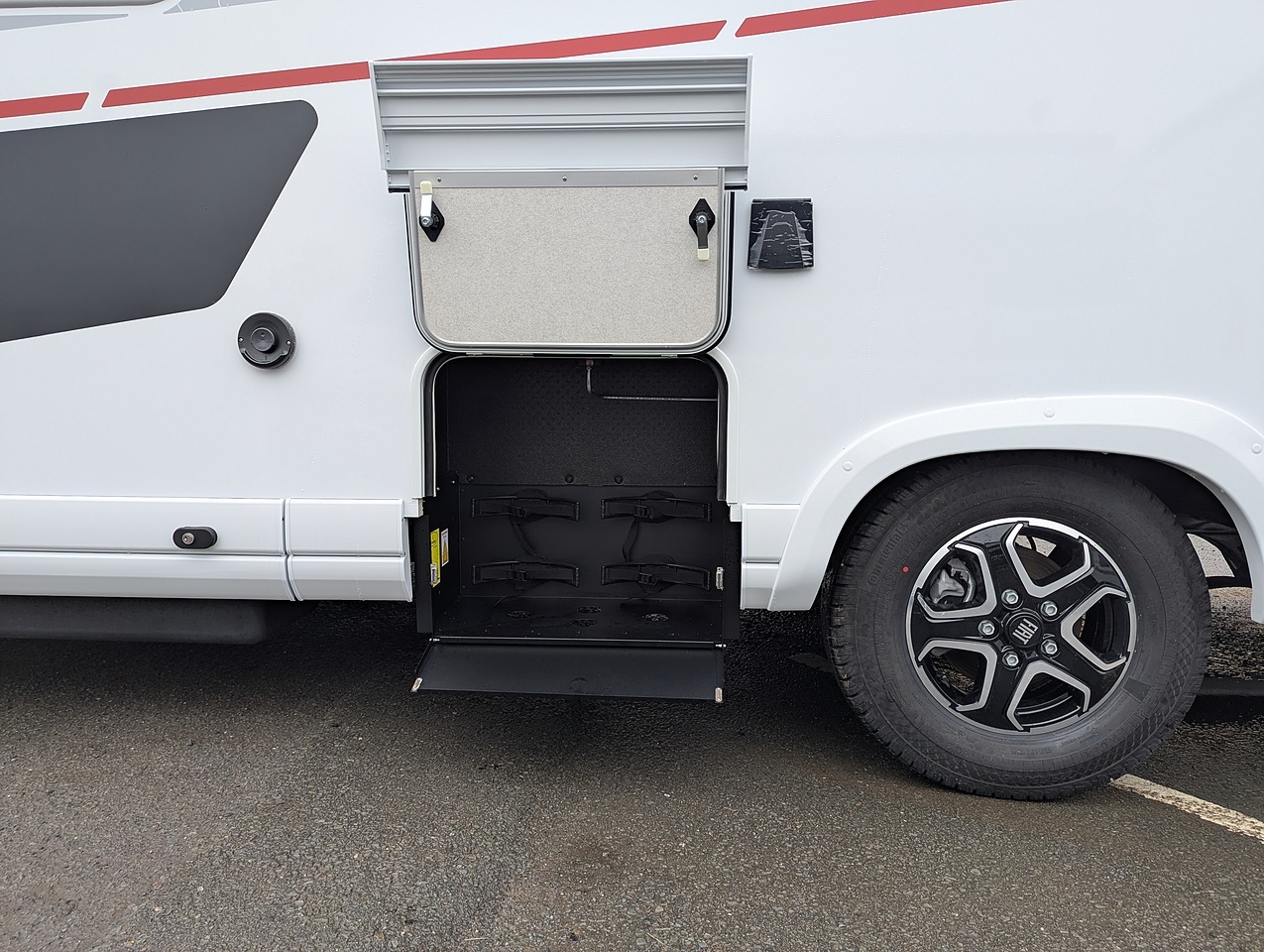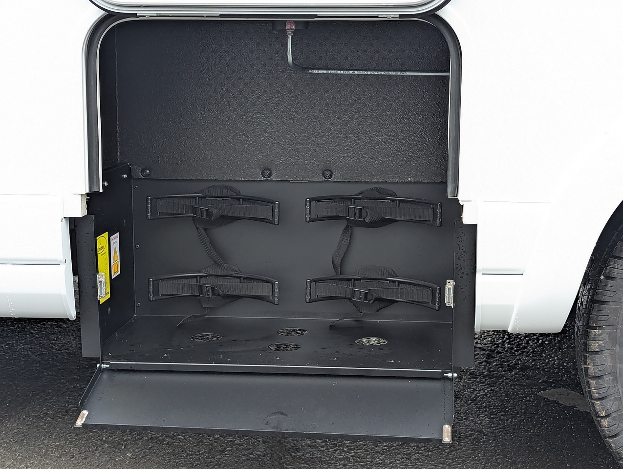 The large hold at the rear of the vehicle is accessible via 2 side doors. Low enough to make loading and unloading easier. A side skirt drawer is fitted for additional storage space.