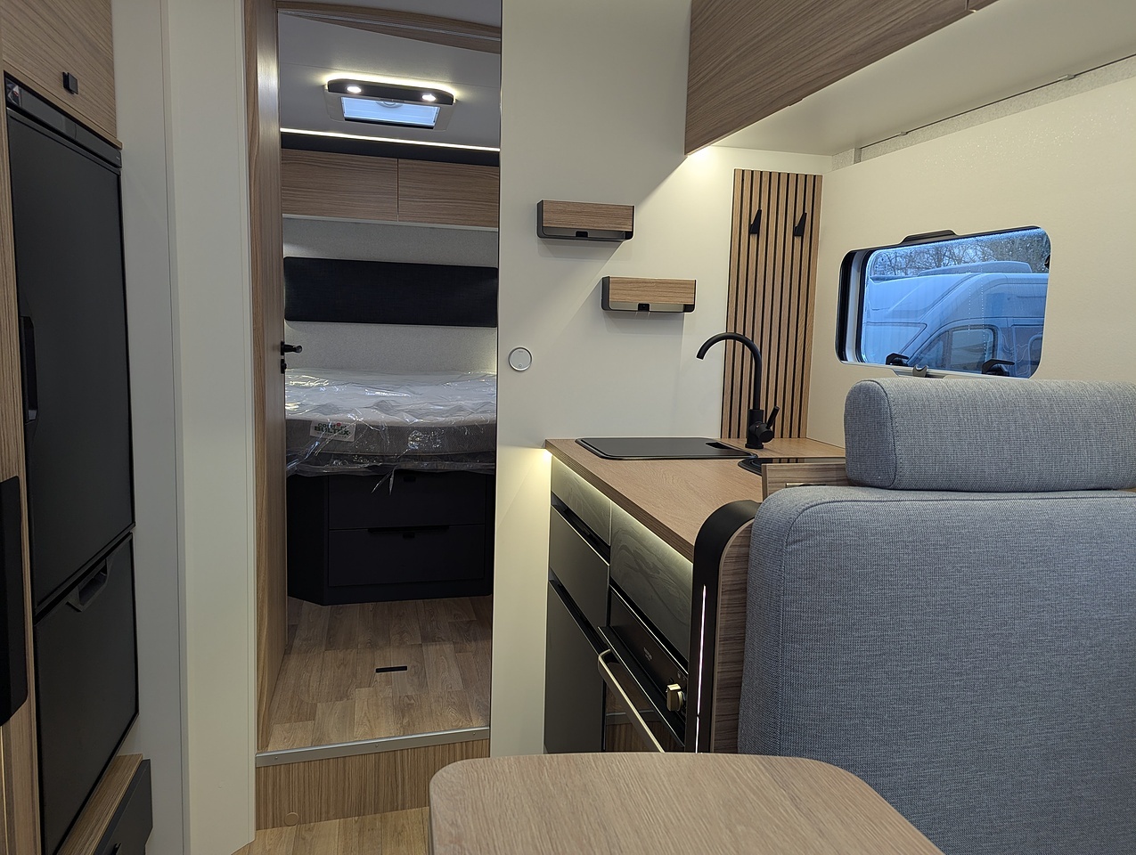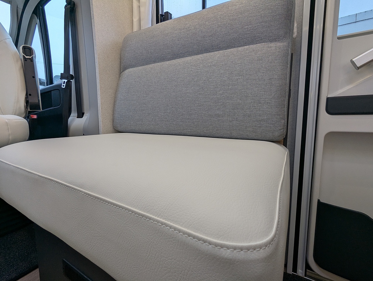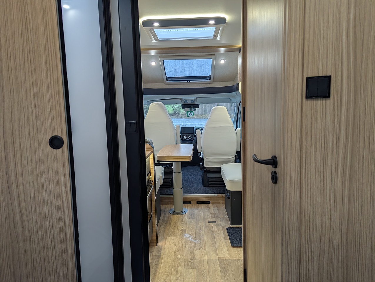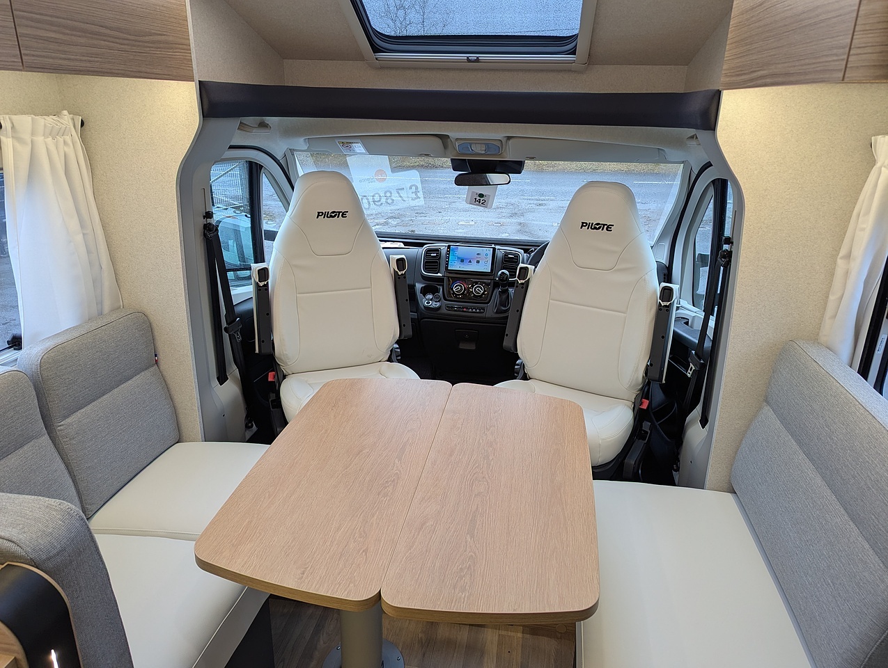 This low-profile has a large lounge with face-to-face bench seats. 5 people can be seated around the fold-out dining table. It’s a perfect layout, both for entertaining and in terms of ease of movement.