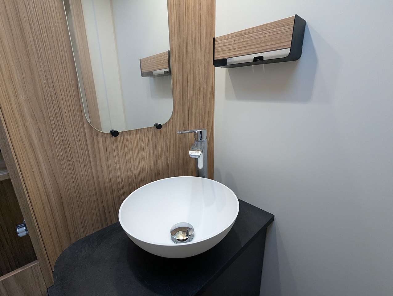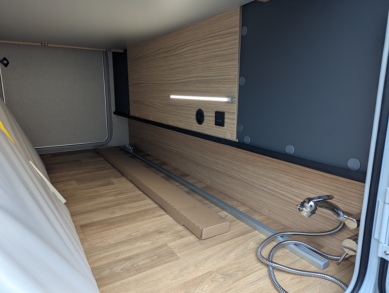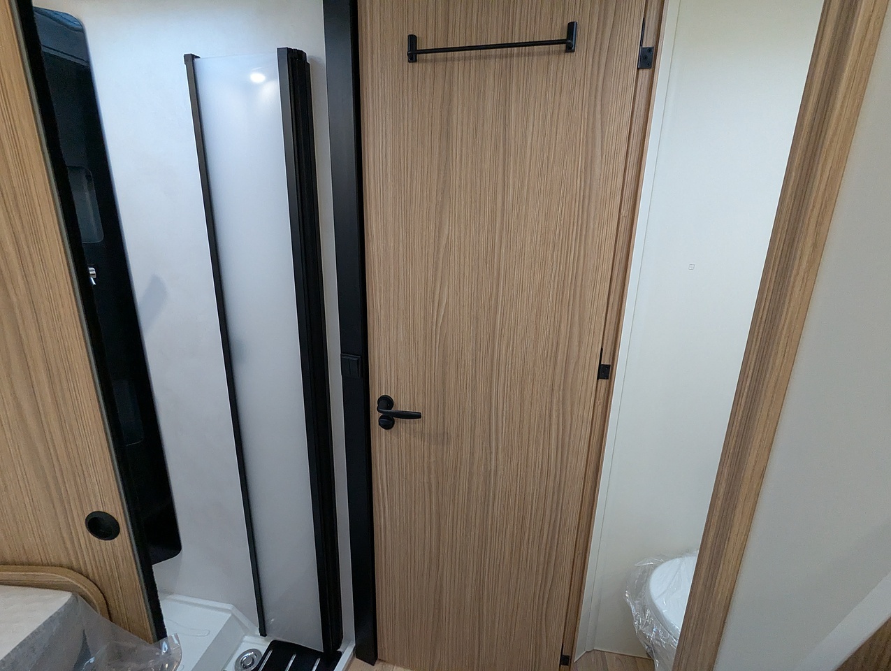 The shower room is walk-through and has double partitioning to provide 3 independent living areas. The skylight provides light and ventilation. And because it's always practical, the shower room is equipped with a clothes hook and towel rail.