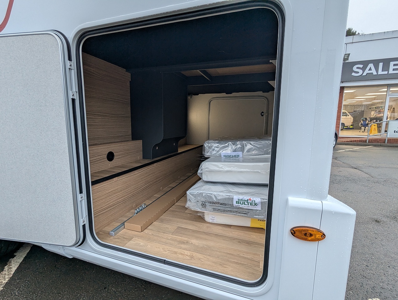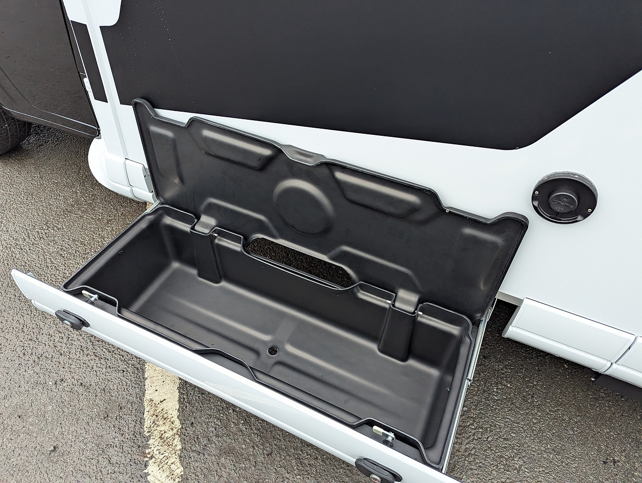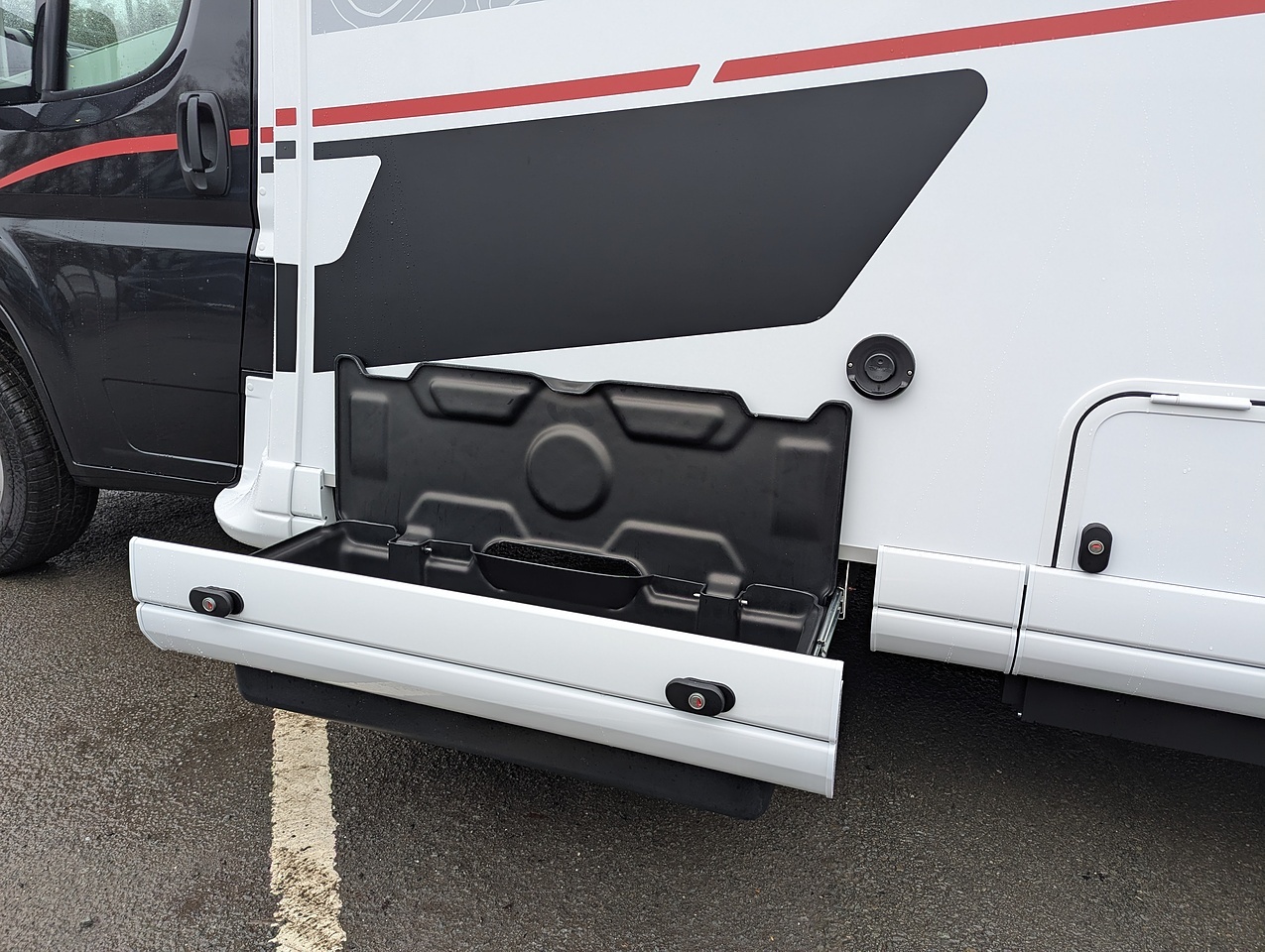 The large hold at the rear of the vehicle is accessible via 2 side doors. Low enough to make loading and unloading easier. Thanks to the raised twin beds above, the storage area boasts excellent height, ideal for transporting tall and bulky items. There is also a side skirt drawer for additional storage space.