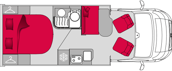 An ultra-compact vehicle with an island bed? We’ve done it! With all the comfort you’re looking for packed into a length of under 6.5 m, the P650C will rise to any challenge! Travel as a twosome in this manoeuvrable low-profile and feel at home wherever you are.