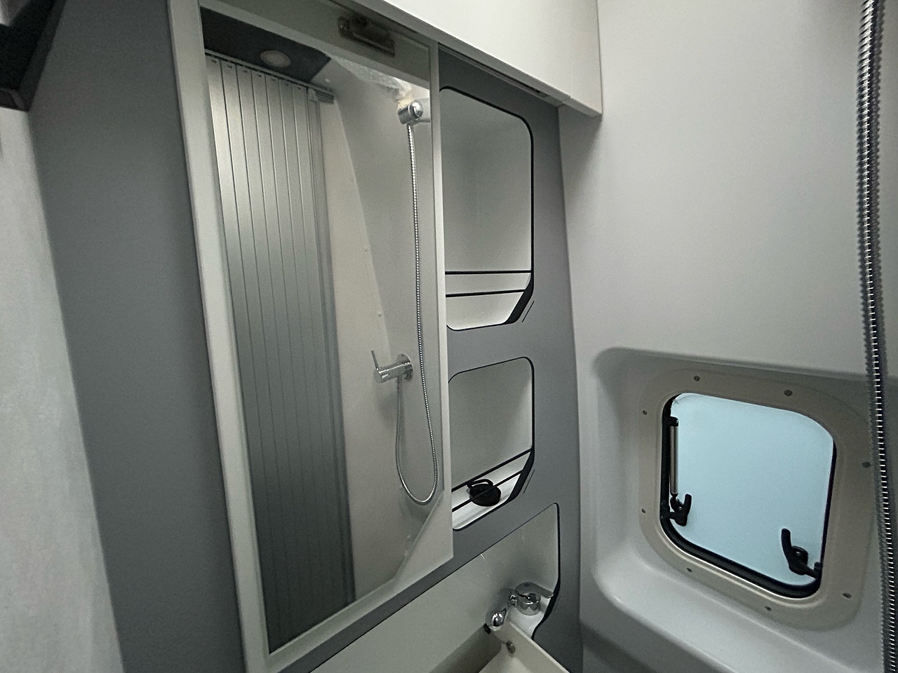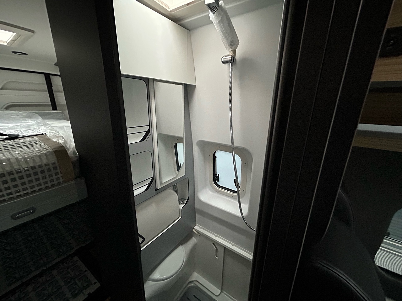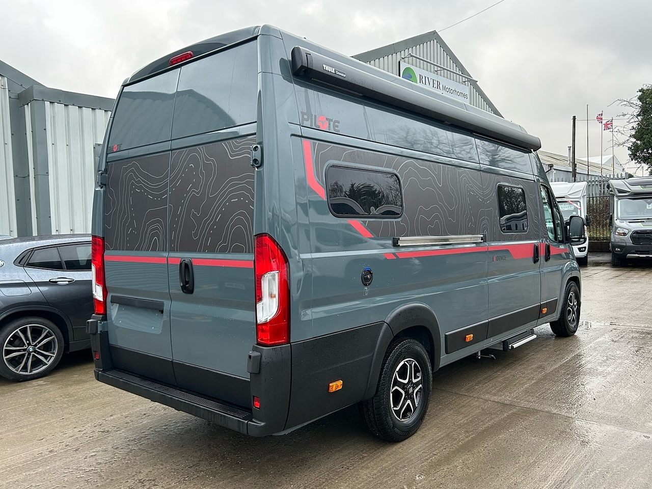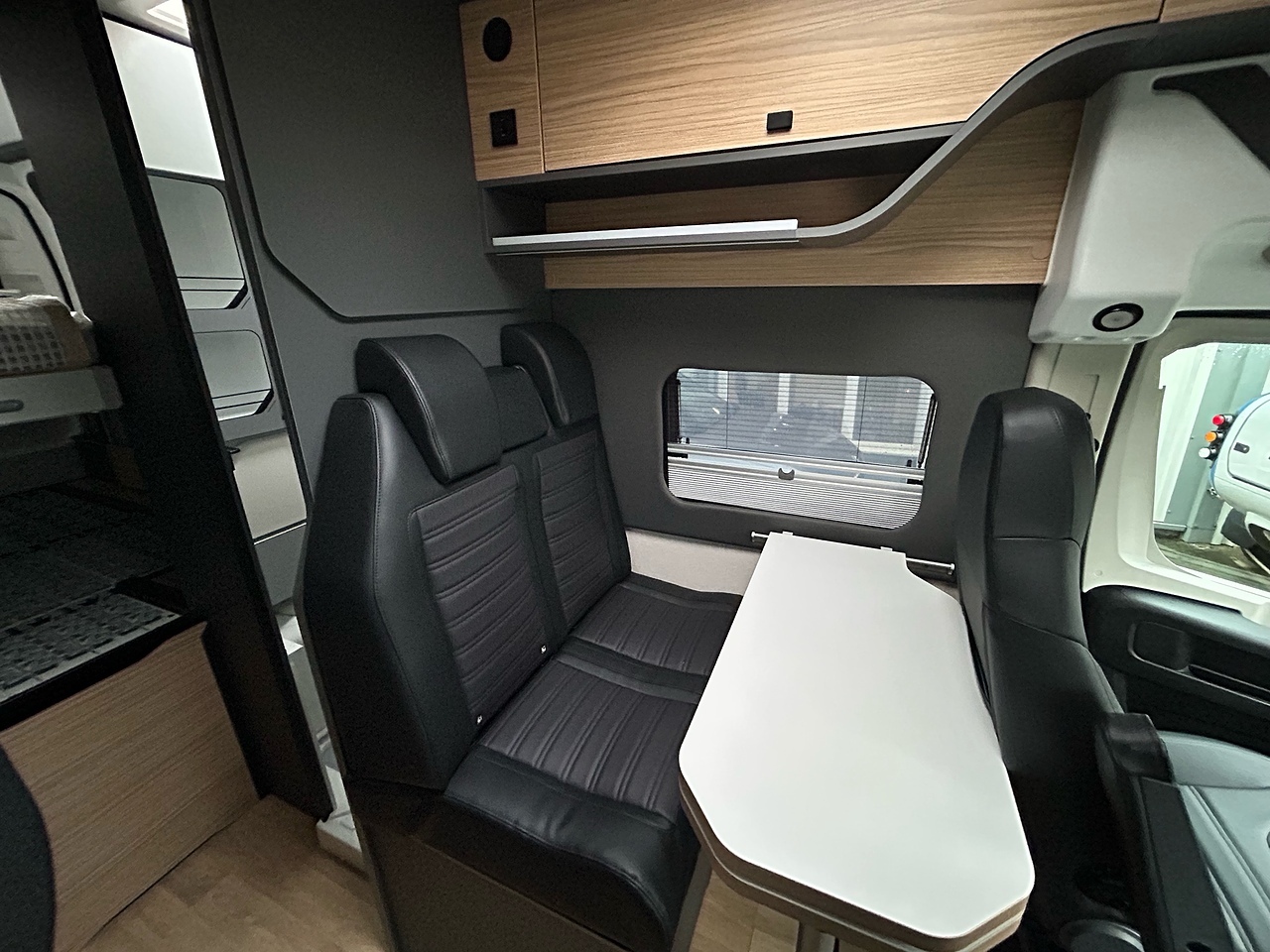 PREMIUM PACK: frost-proof waste water tank, shower head in the storage area, awning, duckboard, automatic Truma® Crash Sensor regulator / switch, backlighting, storage area lighting, protective storage area mat, 700 mm step, premium graphite style, and premium black upholstery