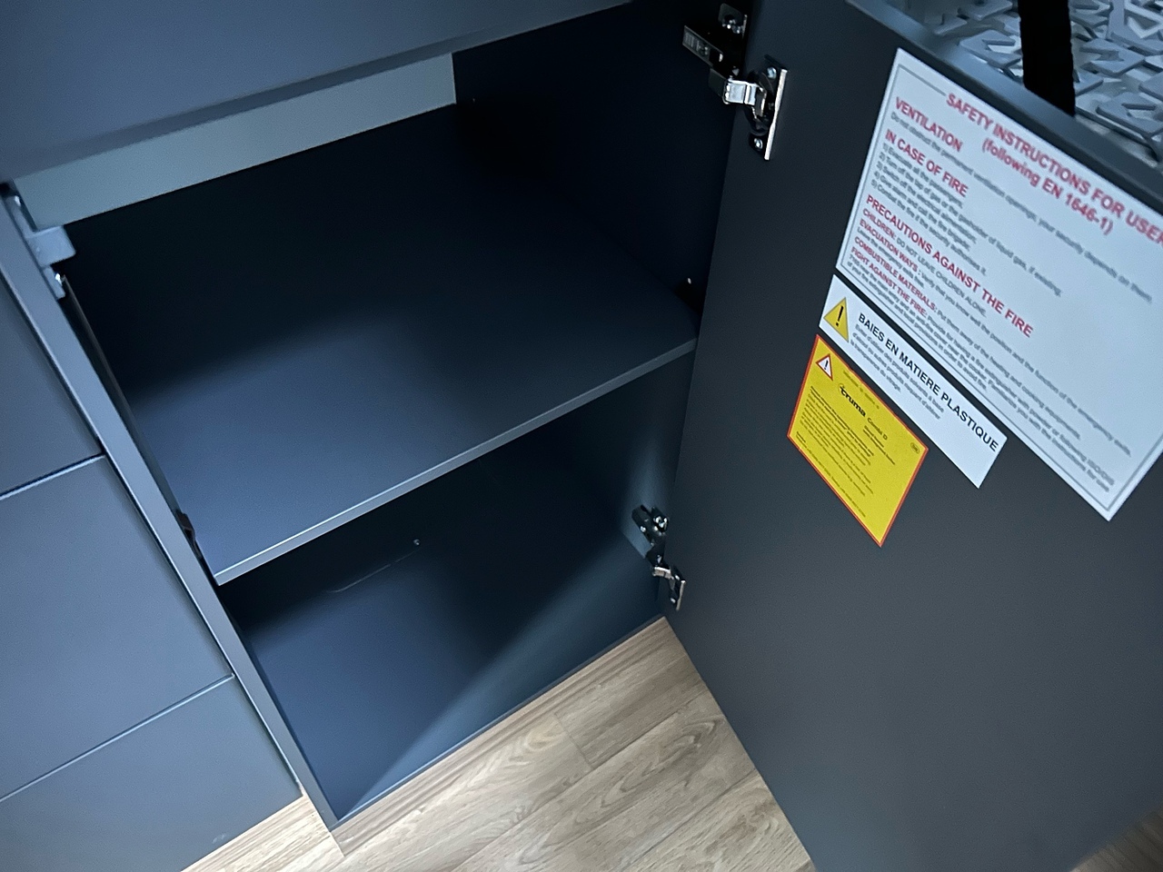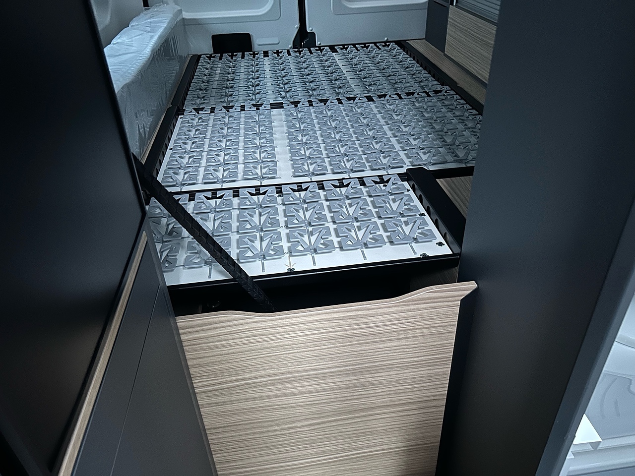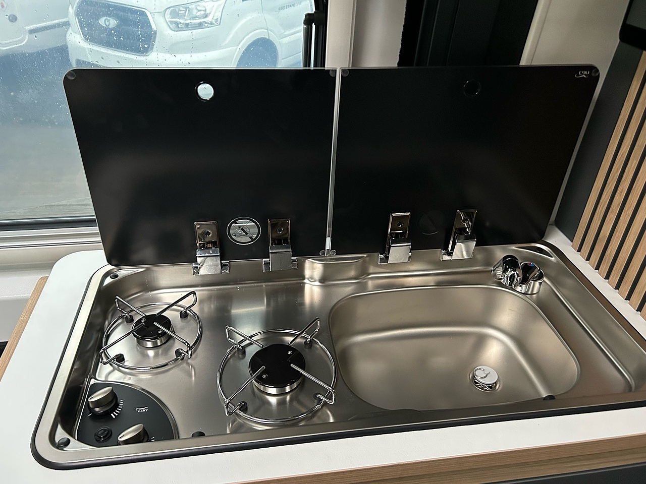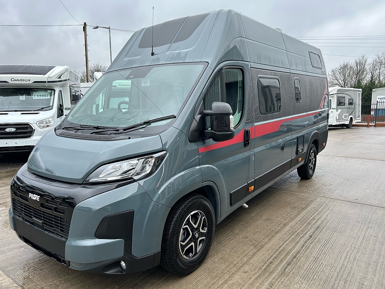 PREMIUM PACK: frost-proof waste water tank, shower head in the storage area, awning, duckboard, automatic Truma® Crash Sensor regulator / switch, backlighting, storage area lighting, protective storage area mat, 700 mm step, premium graphite style, and premium black upholstery