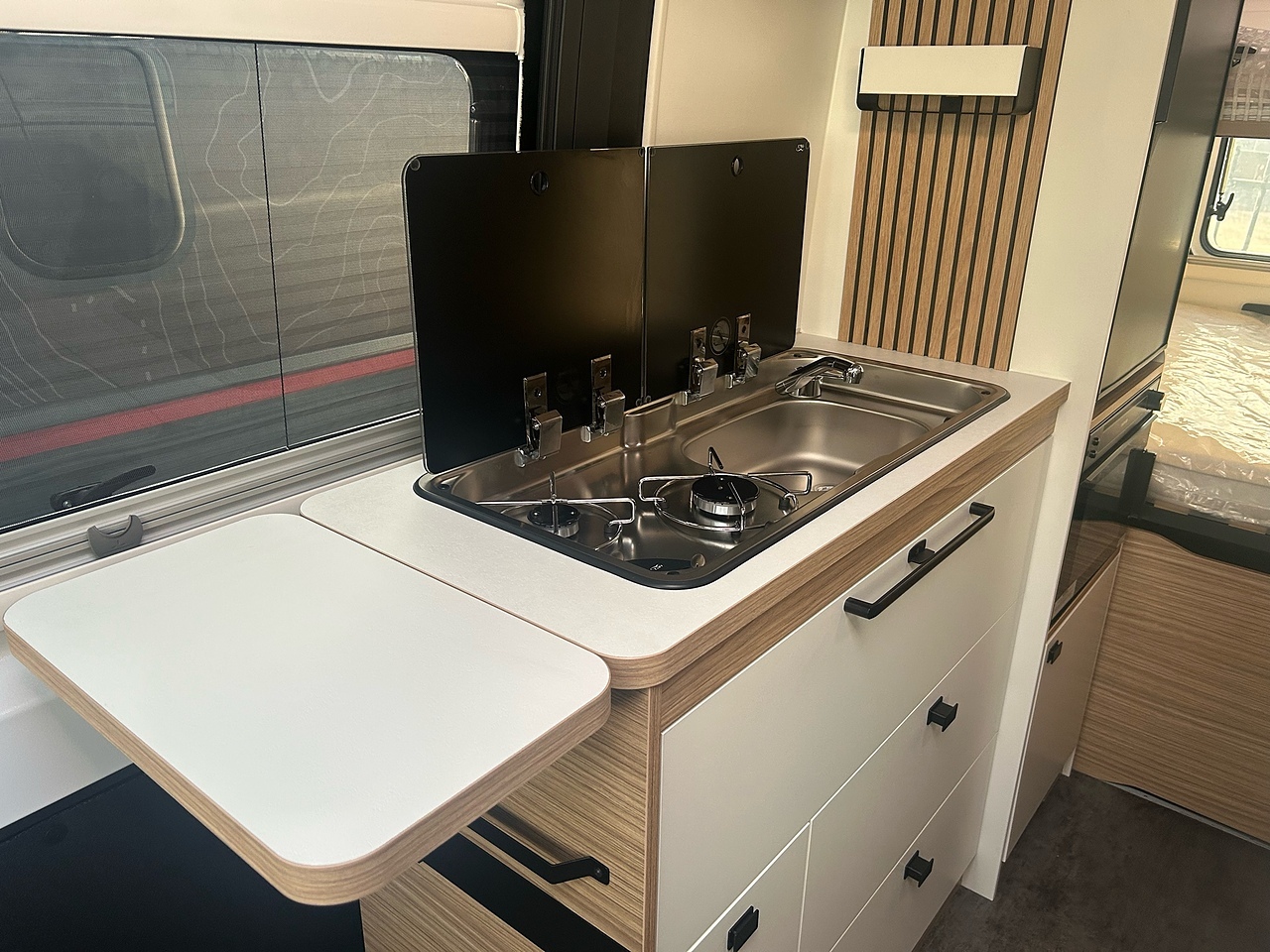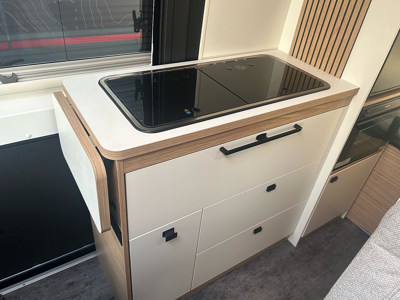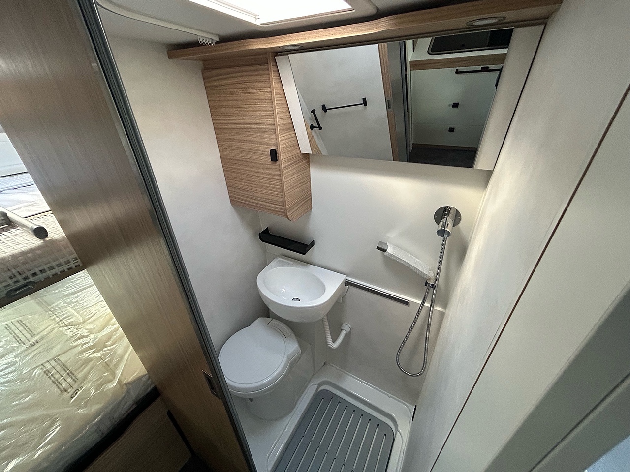 This particlualry high spec vehicle features the optional Automatic Gearbox, factory fitted 22" TV and 4G Aerial, a Combi 6EH boiler, compressor fridge, heated and insulated waste water tank, and a head unit with wireless Apple CarPlay and Android Auto.