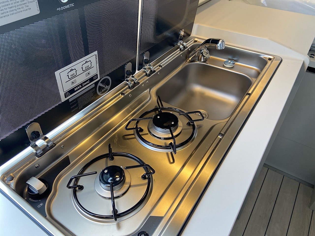The pleasant lounge area, in harmony with the functional variable kitchen, creates an ideal environment for relaxing and dining.