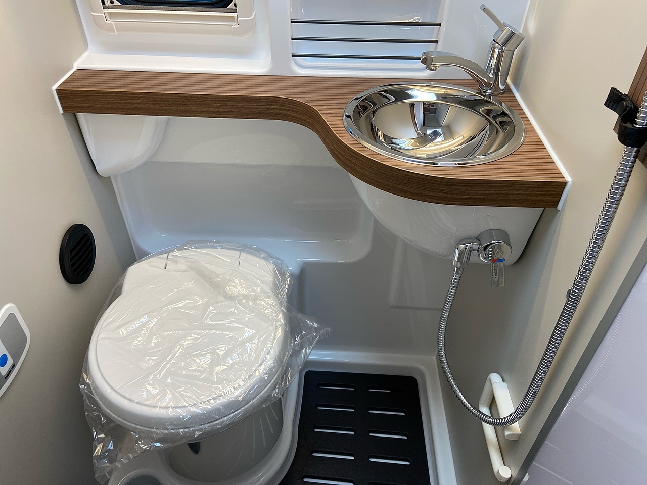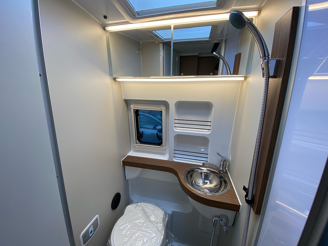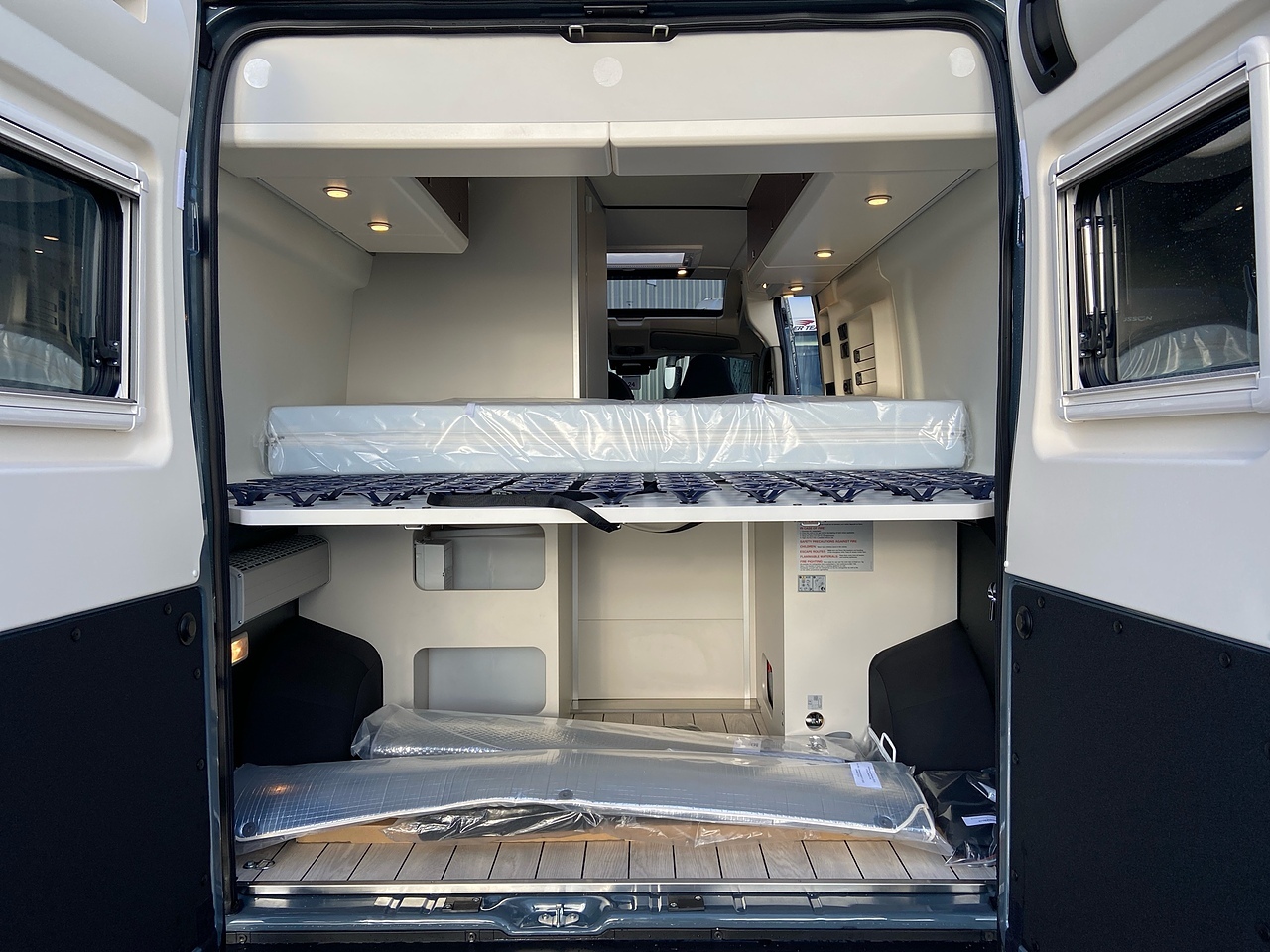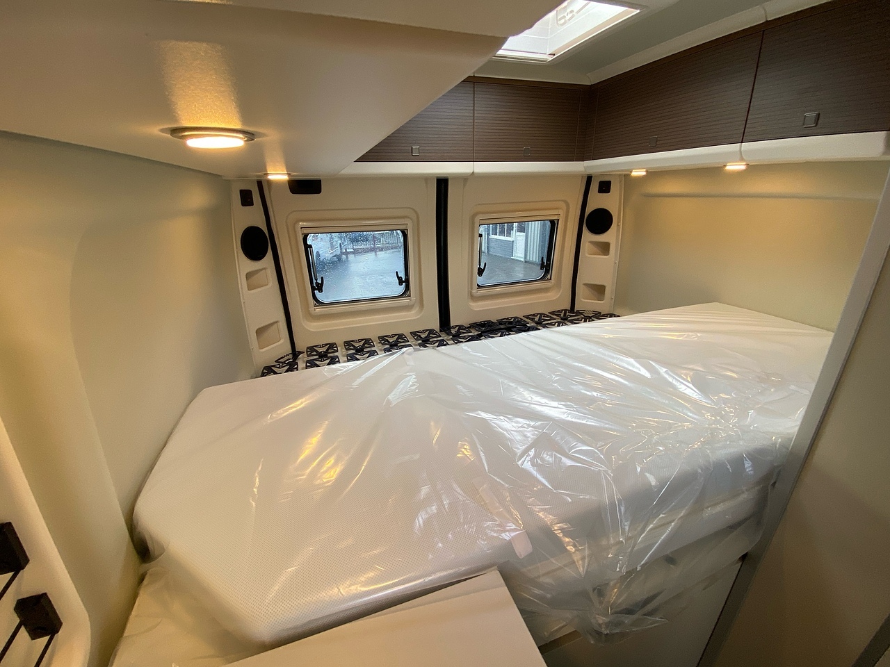 The diesel-powered hot water/heating combi for each zone (living area and washroom) ensures an ideal temperature in all conditions, while the directional sprung base ensures a good night's sleep in the large transverse bed.
