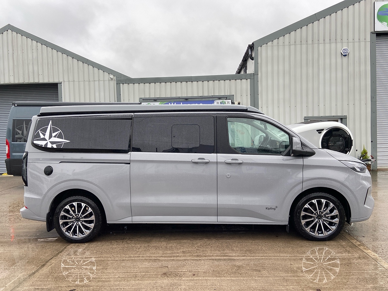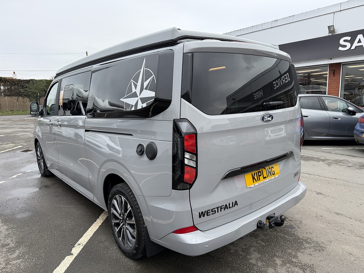 The Westfalia Kipling is a compact 4-seater campervan built on the Ford Transit Custom chassis, designed for both everyday use and long-distance travel. Named after author Rudyard Kipling, it features a unique interior layout with a permanent but modular rear bed and a pop-top roof.