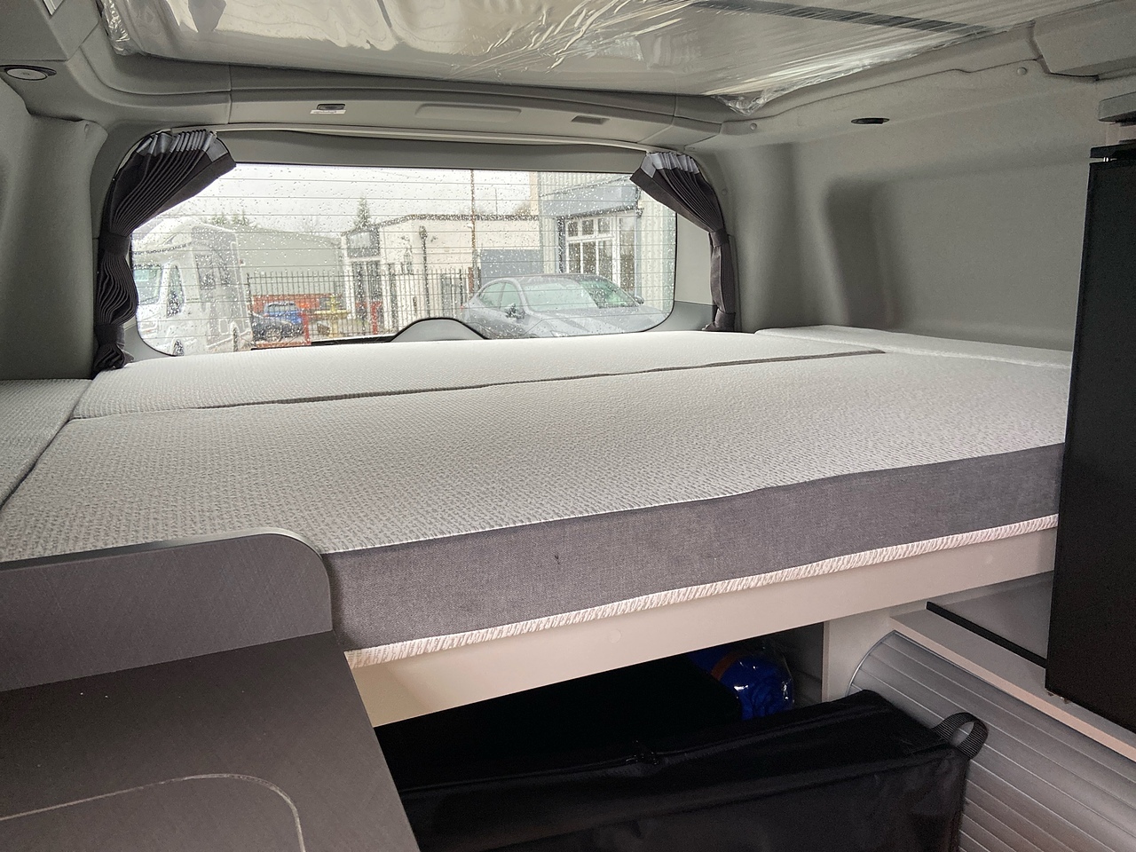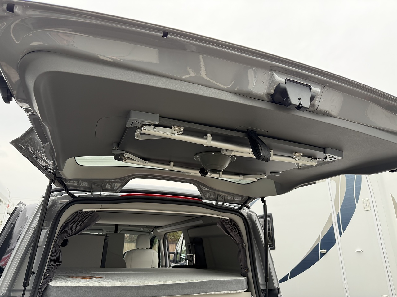 Modular Storage: The slatted base of the rear bed can be adjusted or removed entirely to create an XXL storage compartment for bulky gear like bikes or surfboards.