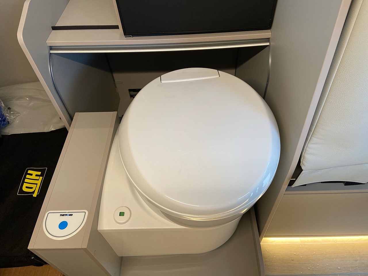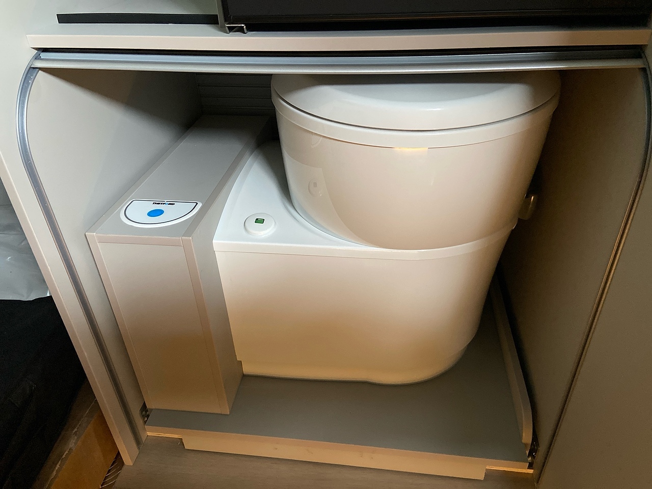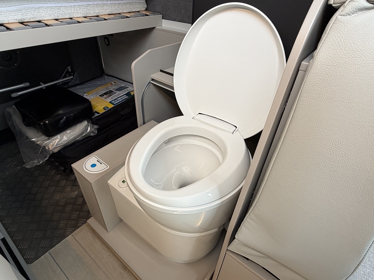 Convenience: It features a fixed cassette toilet at the rear that slides out for use when needed.