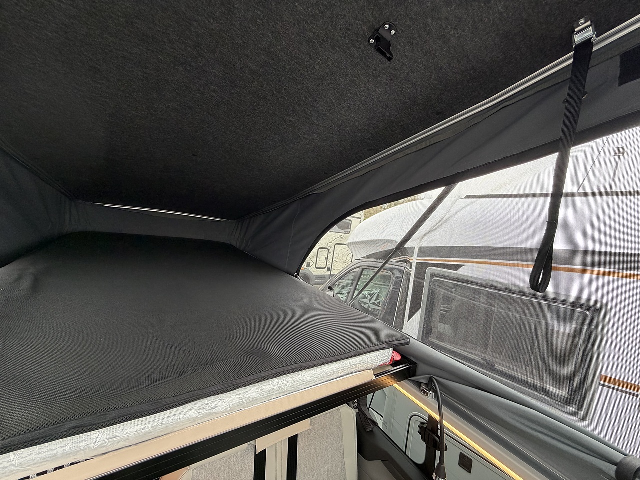 Panoramic Views: The pop-top canvas can be unzipped to reveal 240° panoramic mesh windows, providing airflow and wide-open views.