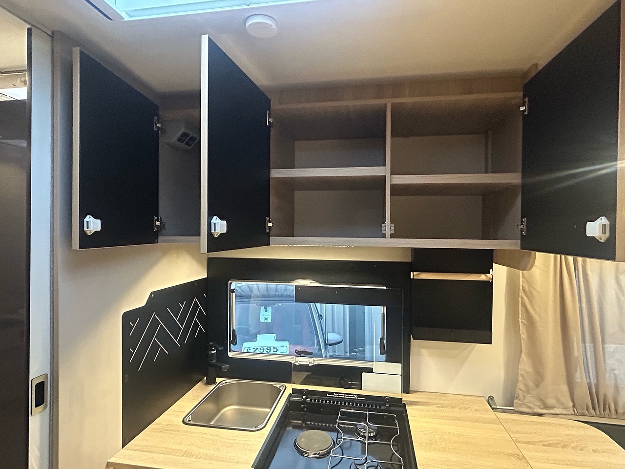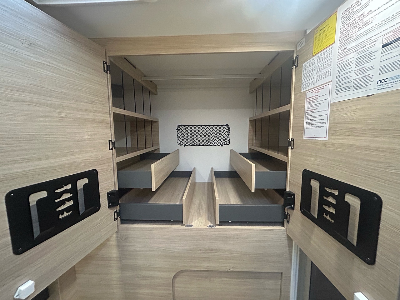 Pack Low Profile, Exterior awning, Solar panel, Entrance door exterior lighting, Door mosquito net, Cab blinds, Extra beds twin beds, 2nd battery installation kit.