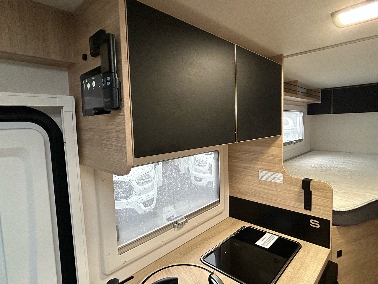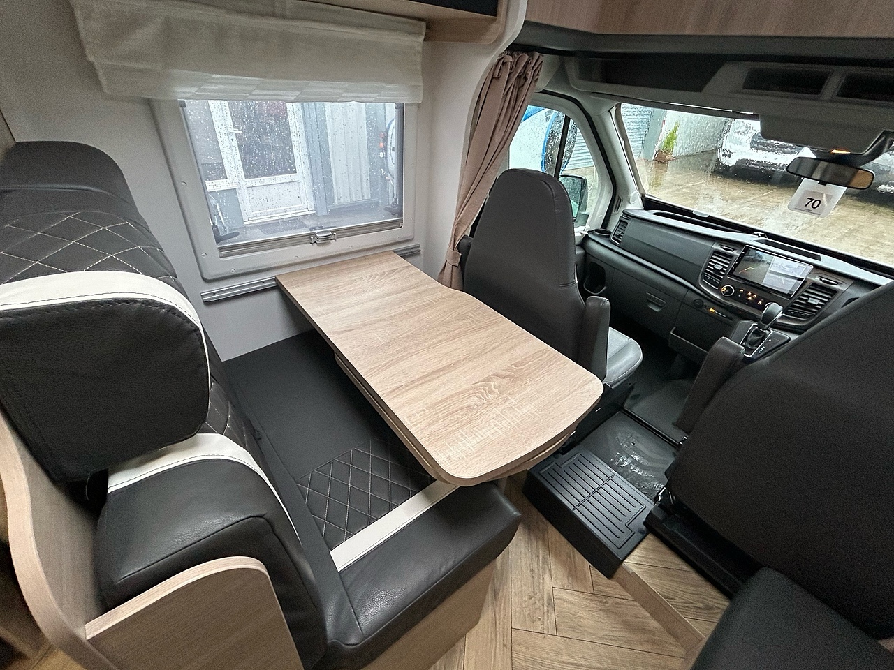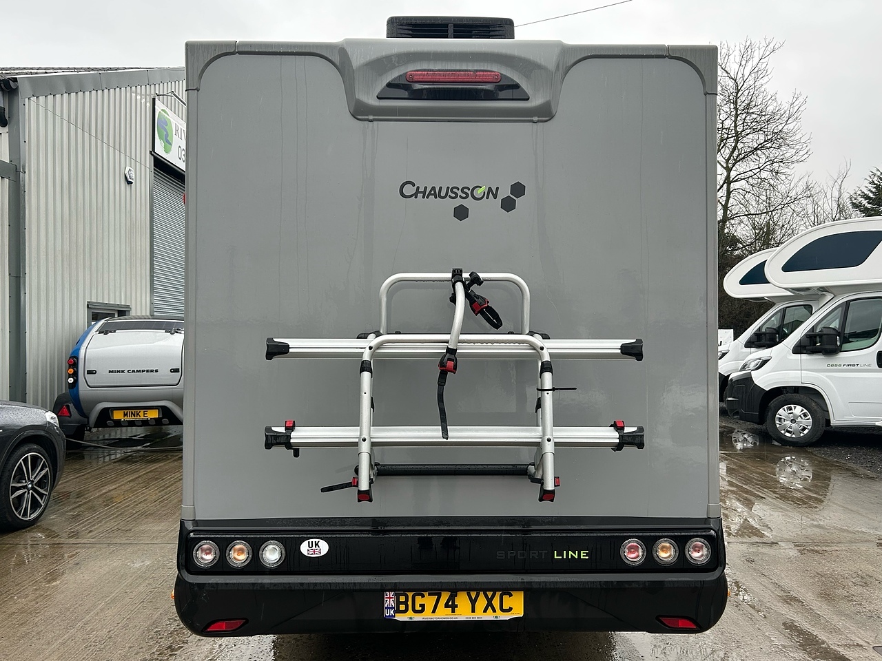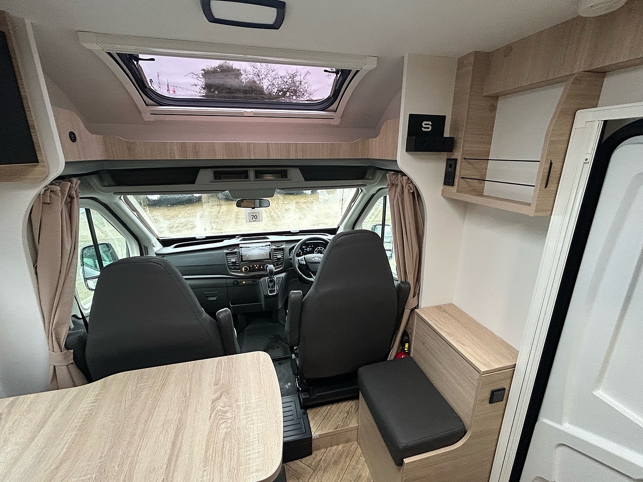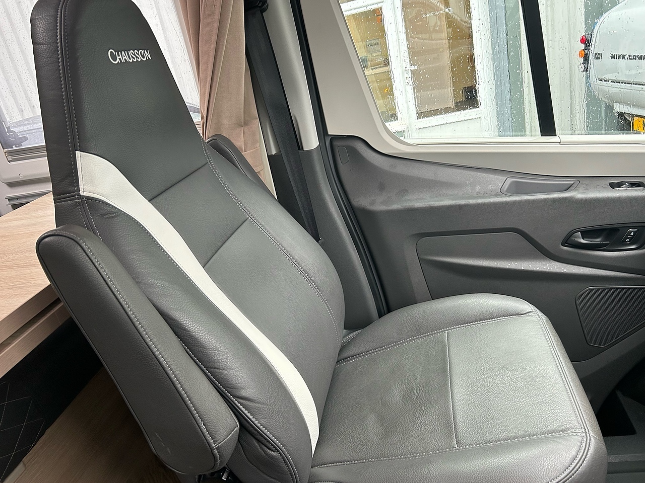 The 2024 Chausson S697 Sport Line is a sleek, compact motorhome designed for adventurous couples or small families. Measuring 6.59 meters in length and just 2.10 meters wide, it offers the agility of a campervan with the comfort of a coachbuilt motorhome.Key Features:Sleeping Seating: Accommodates up to three people with rear single beds above a spacious garage, which can convert into a large double bed. An additional single bed can be made up in the dining area, just behind the swivel cab chairs. Equipped with four seatbelts for safe travel.Interior Amenities: Features a well-equipped side kitchen with a grill, a 135L compressor fridge, and a cleverly designed washroom with a swivel partition, allowing you to create a dedicated shower space in seconds. The garage includes mains and 12V sockets, as well as a heater outlet. Technology & Comfort: Comes standard with the Connect Pack, offering a DAB/Bluetooth radio with touchscreen, steering wheel controls, and a reversing camera. The Accessory Pack includes an exterior awning, solar panel, door mosquito net, cab blinds, and a second battery installation kit. Built on a Ford Transit chassis with 2.0L 170HP engine and automatic transmission, it delivers a smooth and efficient driving experience.With its combination of modern technology, practical design, and stylish aesthetics, the Chausson S697 Sport Line is ready to take you on your next adventure. Manufacturer warranty,Immobiliser,4 Travelling Seats,Adjustable seats,Adjustable steering column,Alloy wheels,Remote locking,Cruise control,Power assisted steering,Radio,Multi function steering wheel,Traction control,3 Berth,Door flyscreen,Blinds & flyscreens,Cassette toilet,Blown air central heating,End bedroom,Fixed Bed,Fridge,Hot water,Oven,Shower.
