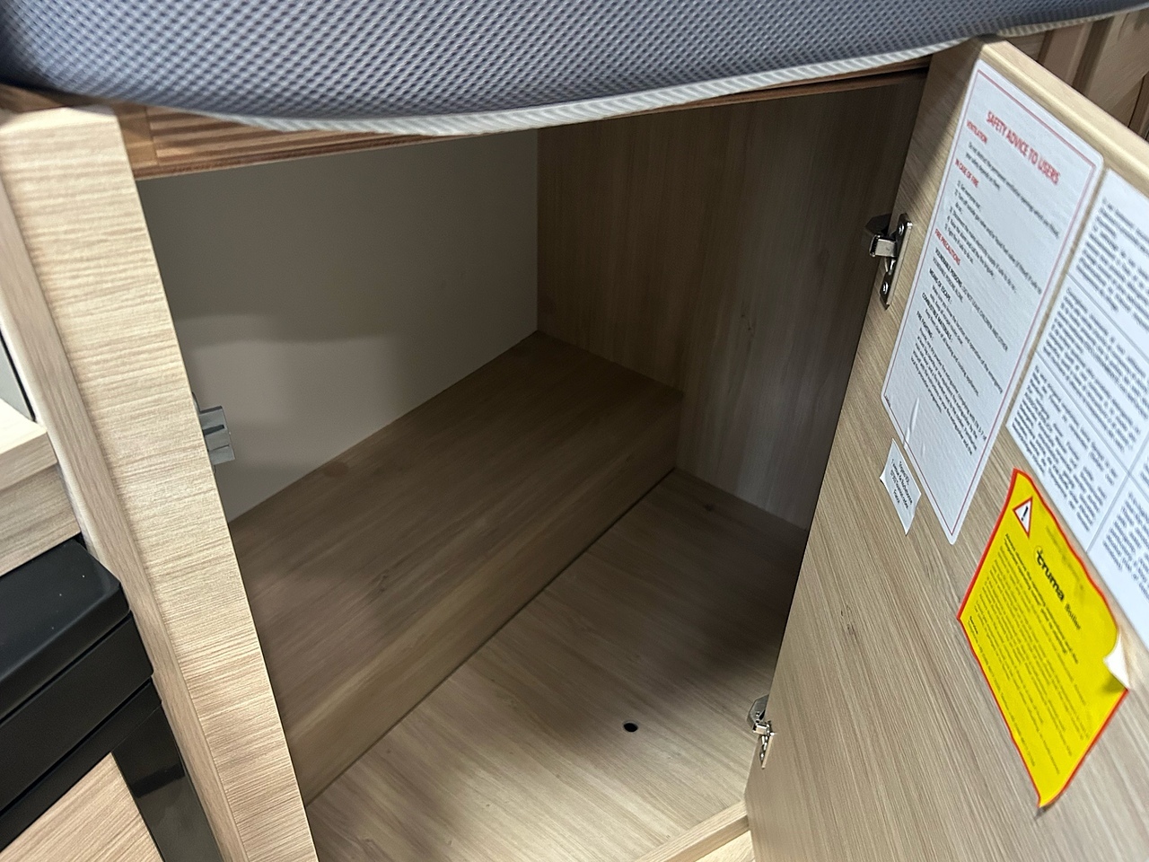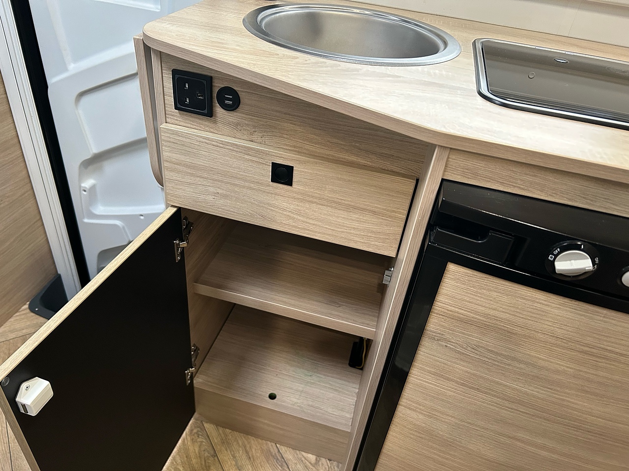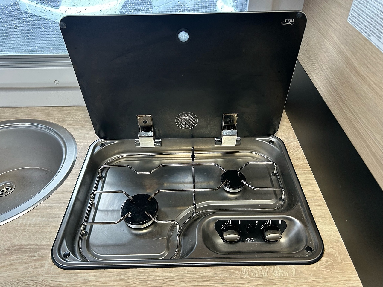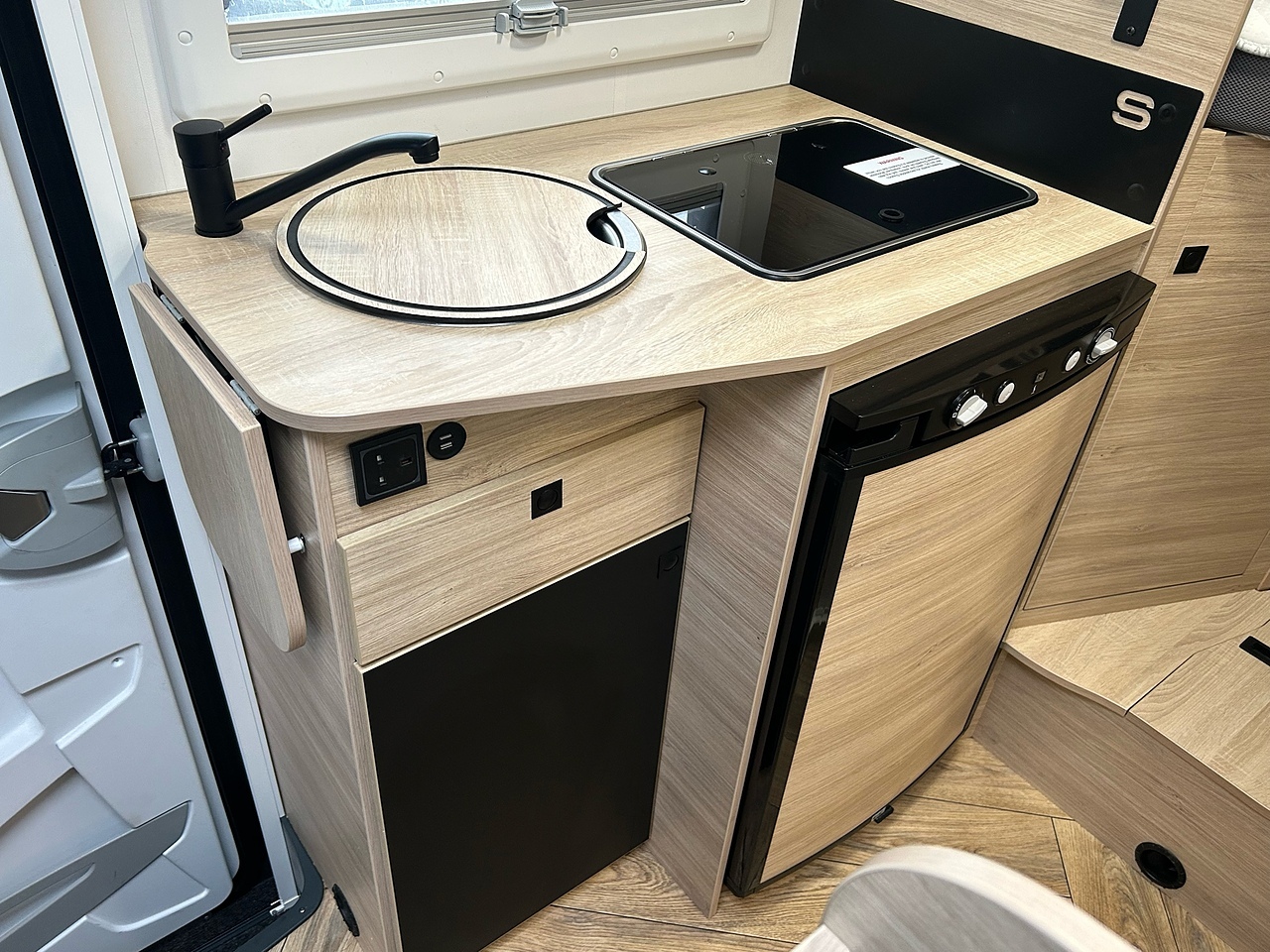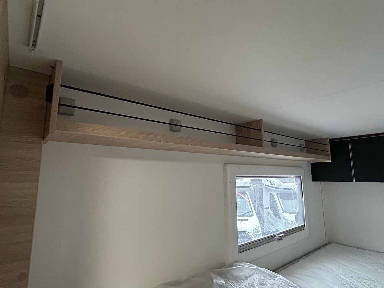 The 2024 Chausson S697 Sport Line is a sleek, compact motorhome designed for adventurous couples or small families. Measuring 6.59 meters in length and just 2.10 meters wide, it offers the agility of a campervan with the comfort of a coachbuilt motorhome.Key Features:Sleeping Seating: Accommodates up to three people with rear single beds above a spacious garage, which can convert into a large double bed. An additional single bed can be made up in the dining area, just behind the swivel cab chairs. Equipped with four seatbelts for safe travel.Interior Amenities: Features a well-equipped side kitchen with a grill, a 135L compressor fridge, and a cleverly designed washroom with a swivel partition, allowing you to create a dedicated shower space in seconds. The garage includes mains and 12V sockets, as well as a heater outlet. Technology & Comfort: Comes standard with the Connect Pack, offering a DAB/Bluetooth radio with touchscreen, steering wheel controls, and a reversing camera. The Accessory Pack includes an exterior awning, solar panel, door mosquito net, cab blinds, and a second battery installation kit. Built on a Ford Transit chassis with 2.0L 170HP engine and automatic transmission, it delivers a smooth and efficient driving experience.With its combination of modern technology, practical design, and stylish aesthetics, the Chausson S697 Sport Line is ready to take you on your next adventure. Manufacturer warranty,Immobiliser,4 Travelling Seats,Adjustable seats,Adjustable steering column,Alloy wheels,Remote locking,Cruise control,Power assisted steering,Radio,Multi function steering wheel,Traction control,3 Berth,Door flyscreen,Blinds & flyscreens,Cassette toilet,Blown air central heating,End bedroom,Fixed Bed,Fridge,Hot water,Oven,Shower.