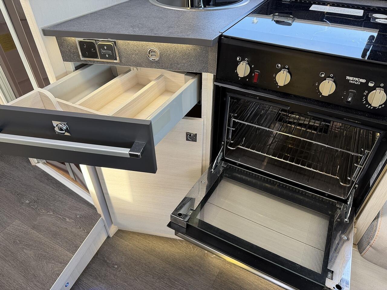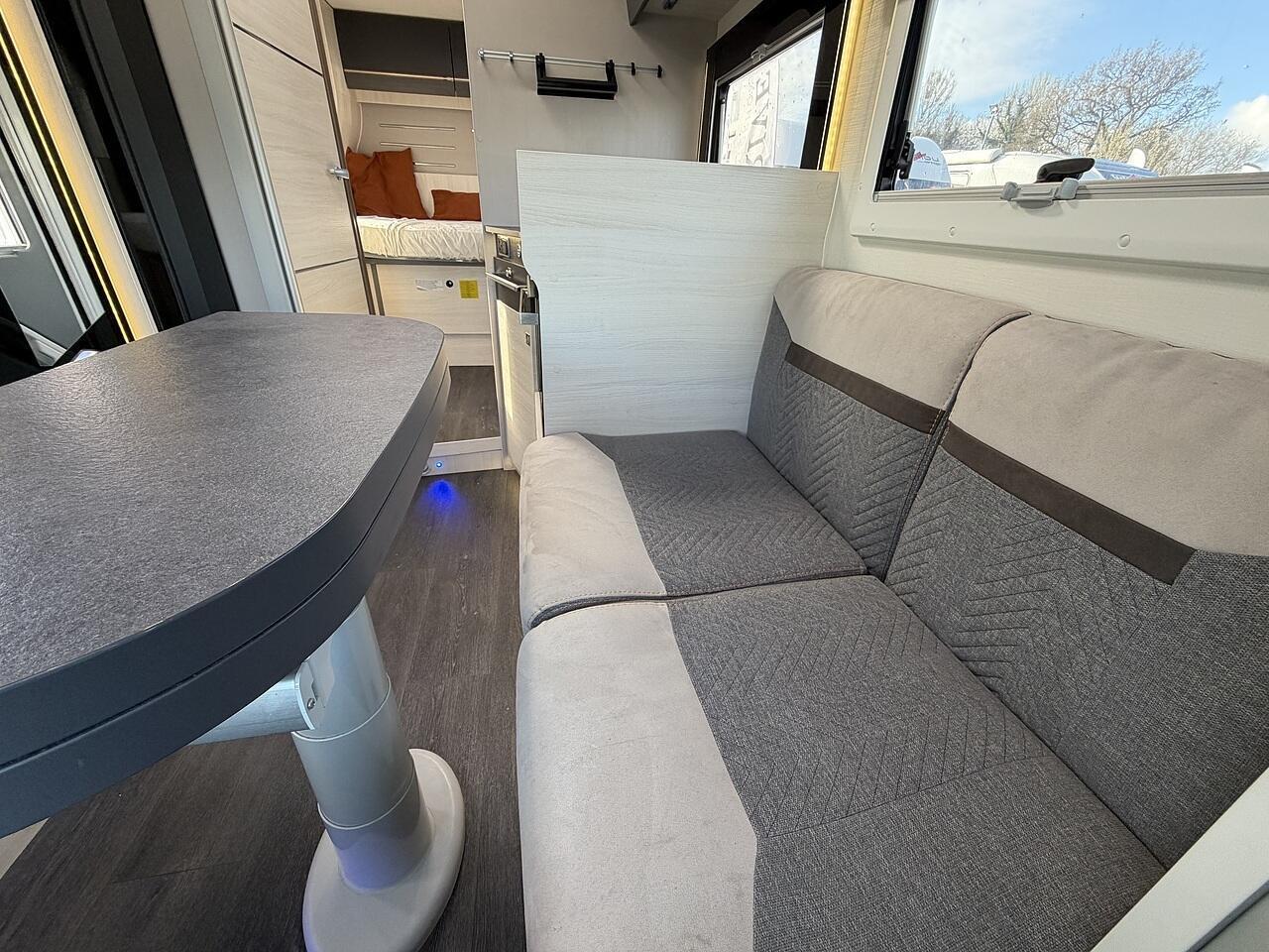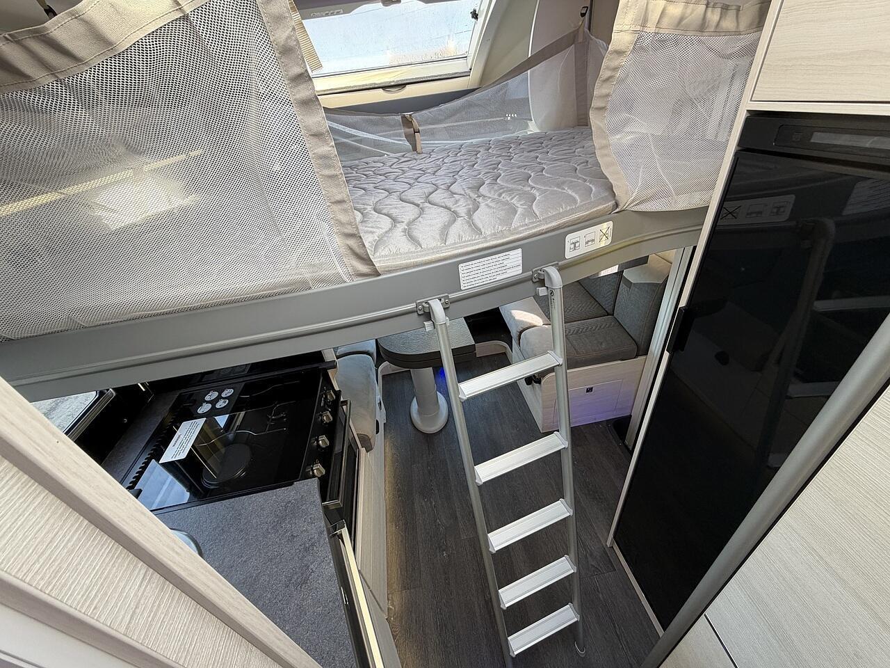 There’s also an electric drop-down bed over the lounge, making this a flexible 4-berth option without compromising living space.