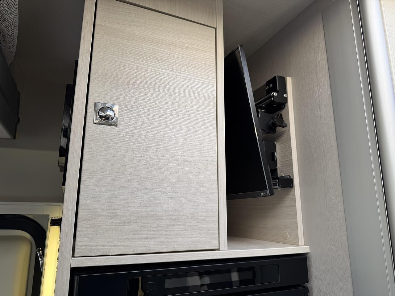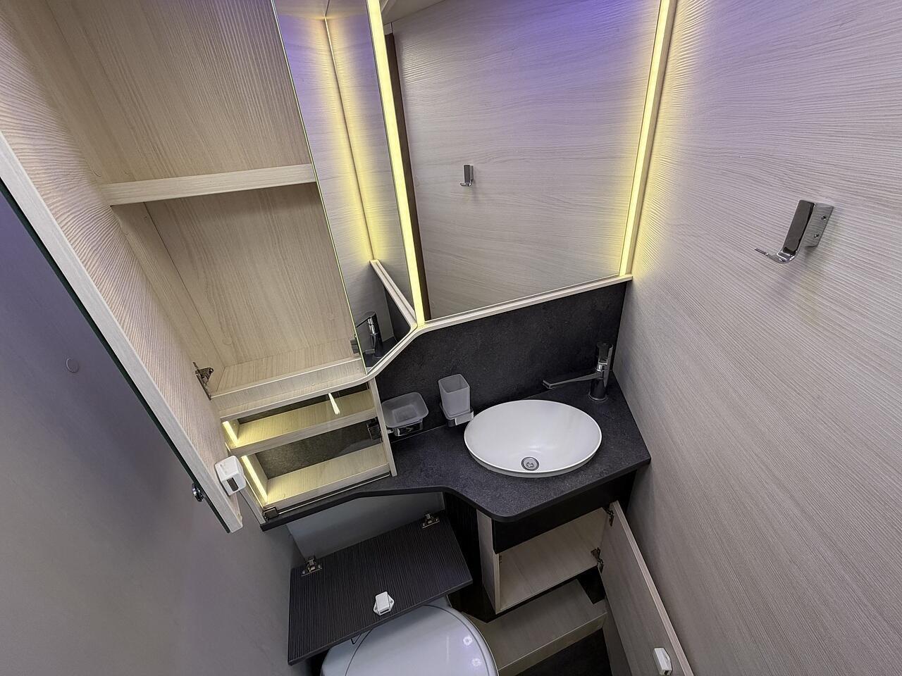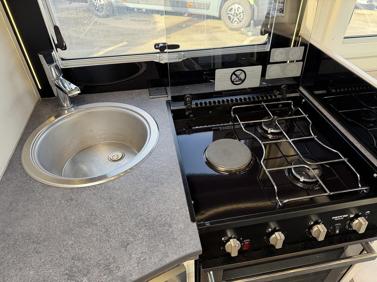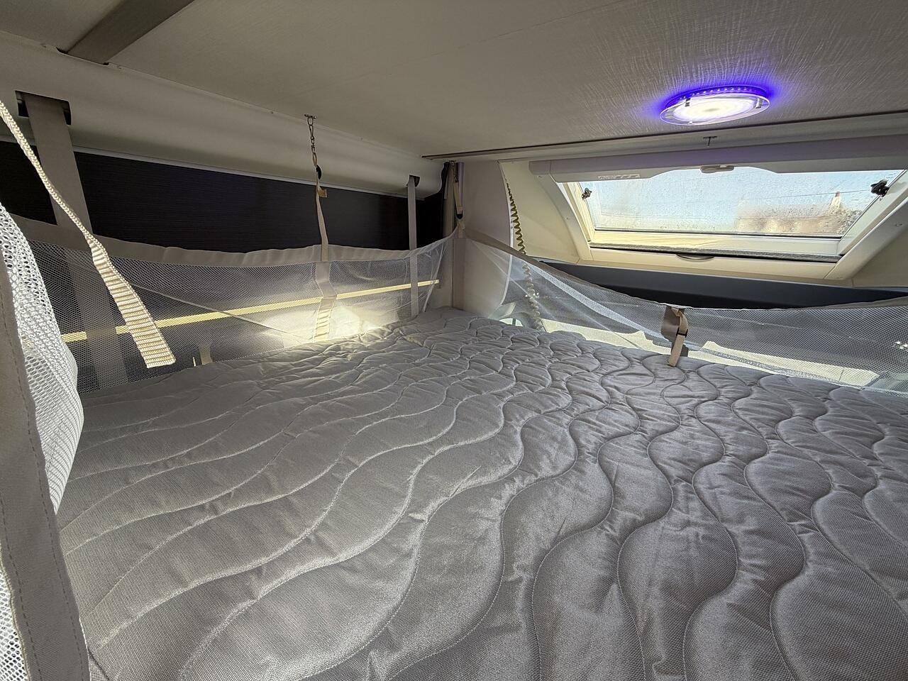There’s also an electric drop-down bed over the lounge, making this a flexible 4-berth option without compromising living space.