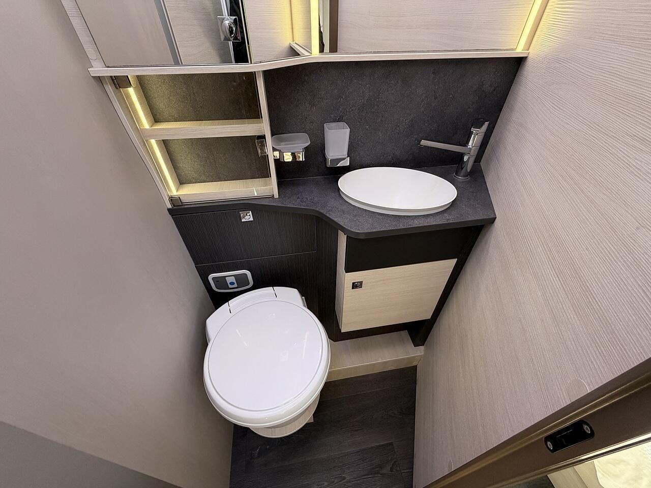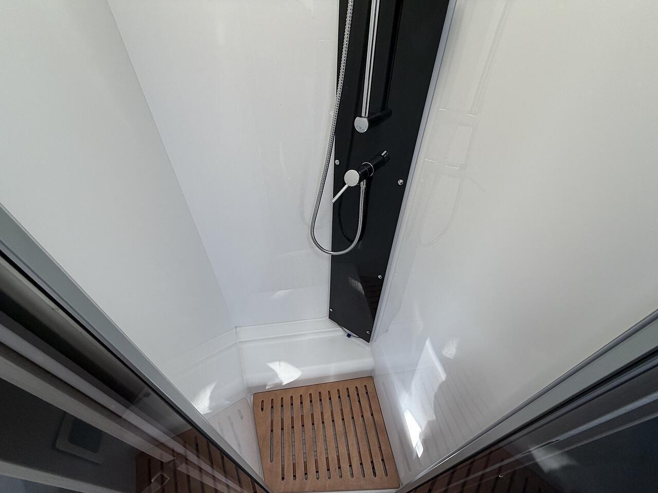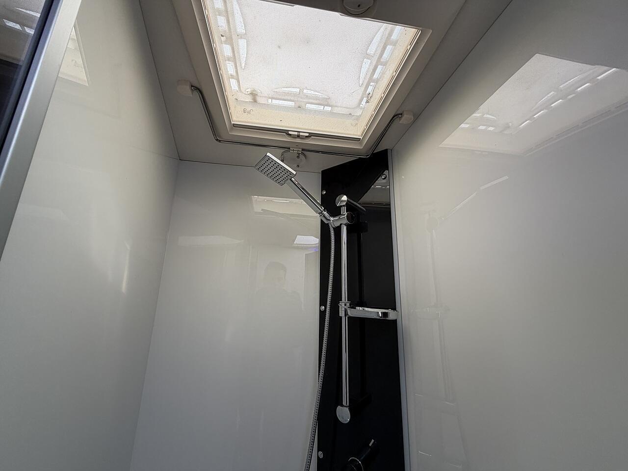 Midway through the van, you’ve got a separate shower and toilet area, which works really well for privacy and day-to-day use.